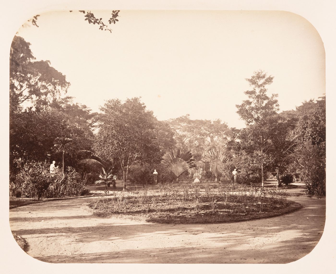 View of the garden of the house of the Resident of Batavia showing statues, Batavia (now Jakarta), Dutch East Indies (now Indonesia)