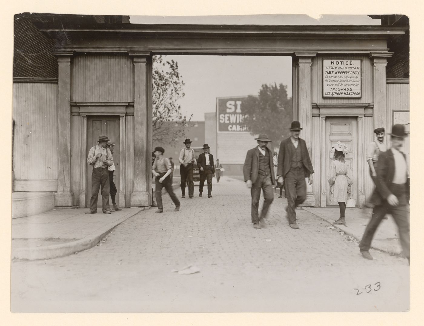 Caption from NCLC caption card: "Lunch hour. Singer Mfg. Co. : the boys [sic] works there: girl carries lunch".