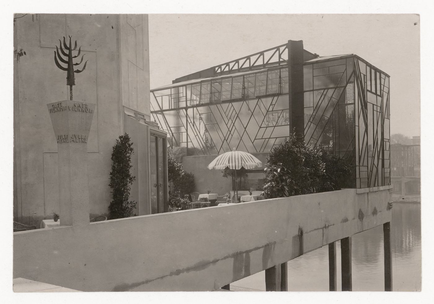 View of the deck of Café Viennois showing the glass house, International Exhibition of Modern Decorative and Industrial Arts [Exposition internationale des arts décoratifs et industriels modernes], Paris, France