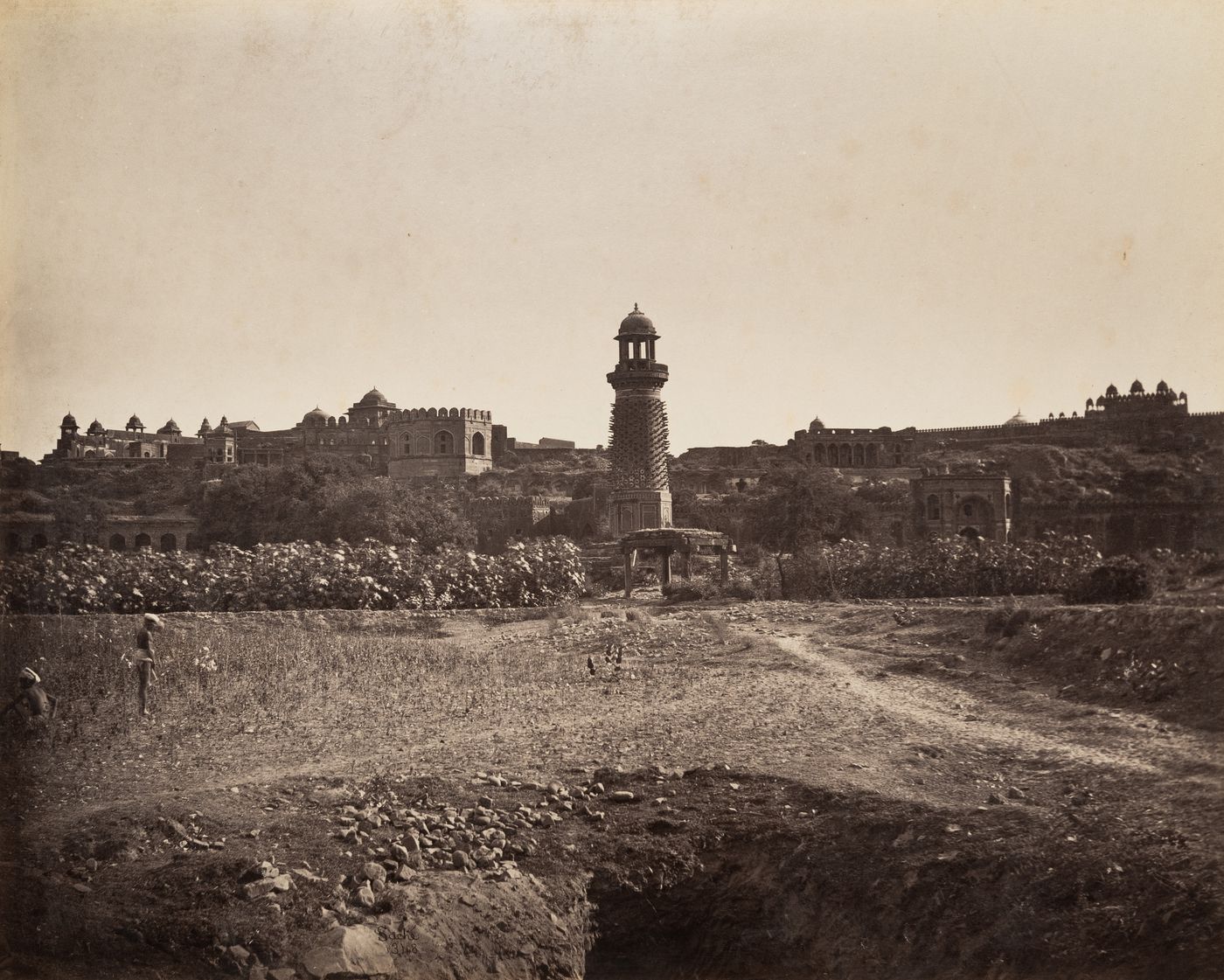 View of Hiran Minar and battlements, Fatehpur Sikri, India