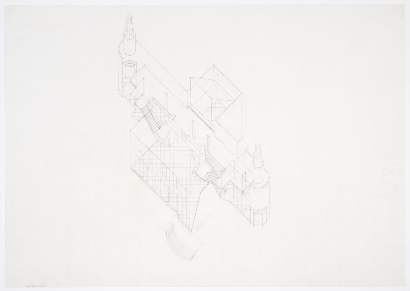 School of Architecture Addition, Rice University, Houston, Texas: axonometric sketch