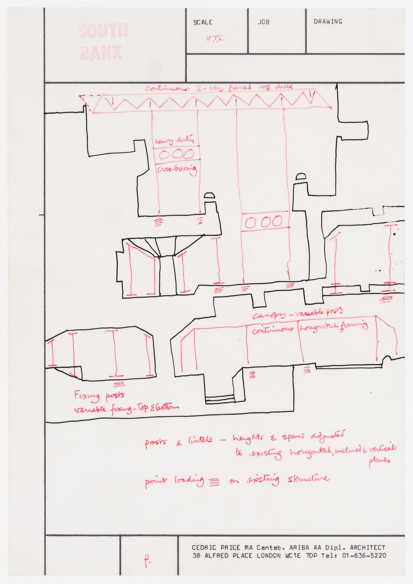South Bank: sketch for "continuous 2-way framed roof deck"