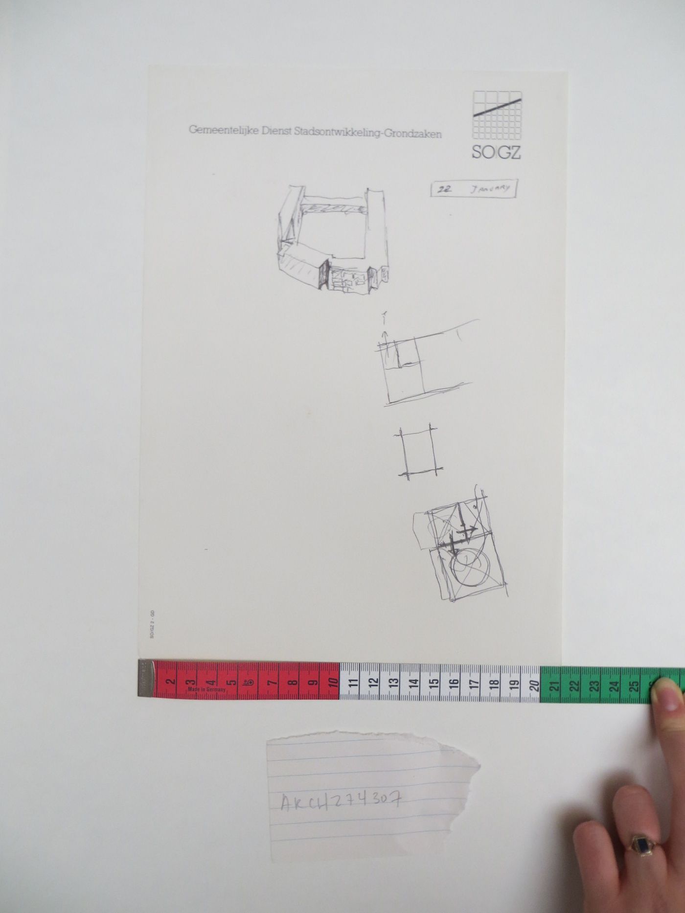 Sketch of block corner and access studies, Punt en Komma, The Hague