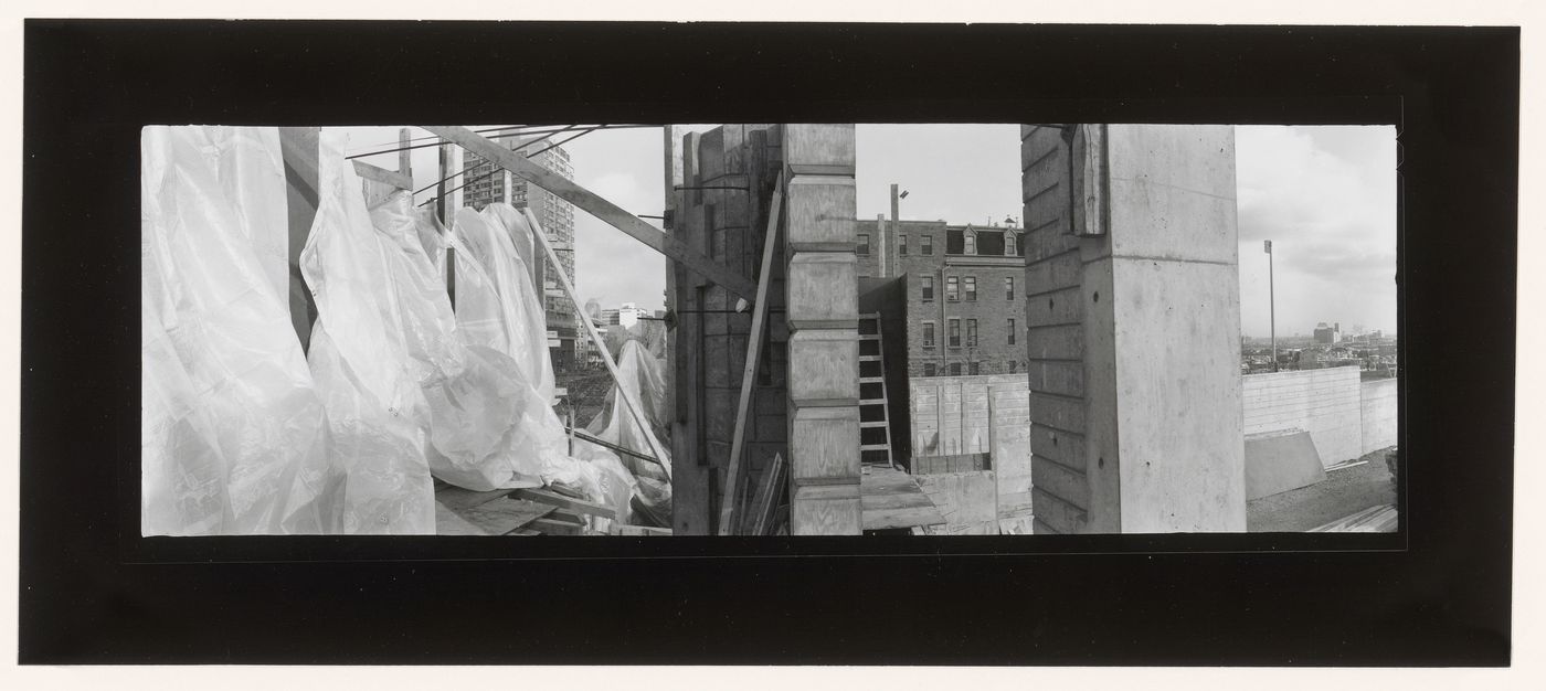 Close-up view of the Arcade of the Canadian Centre for Architecture Garden under construction, Montréal, Québec, Canada
