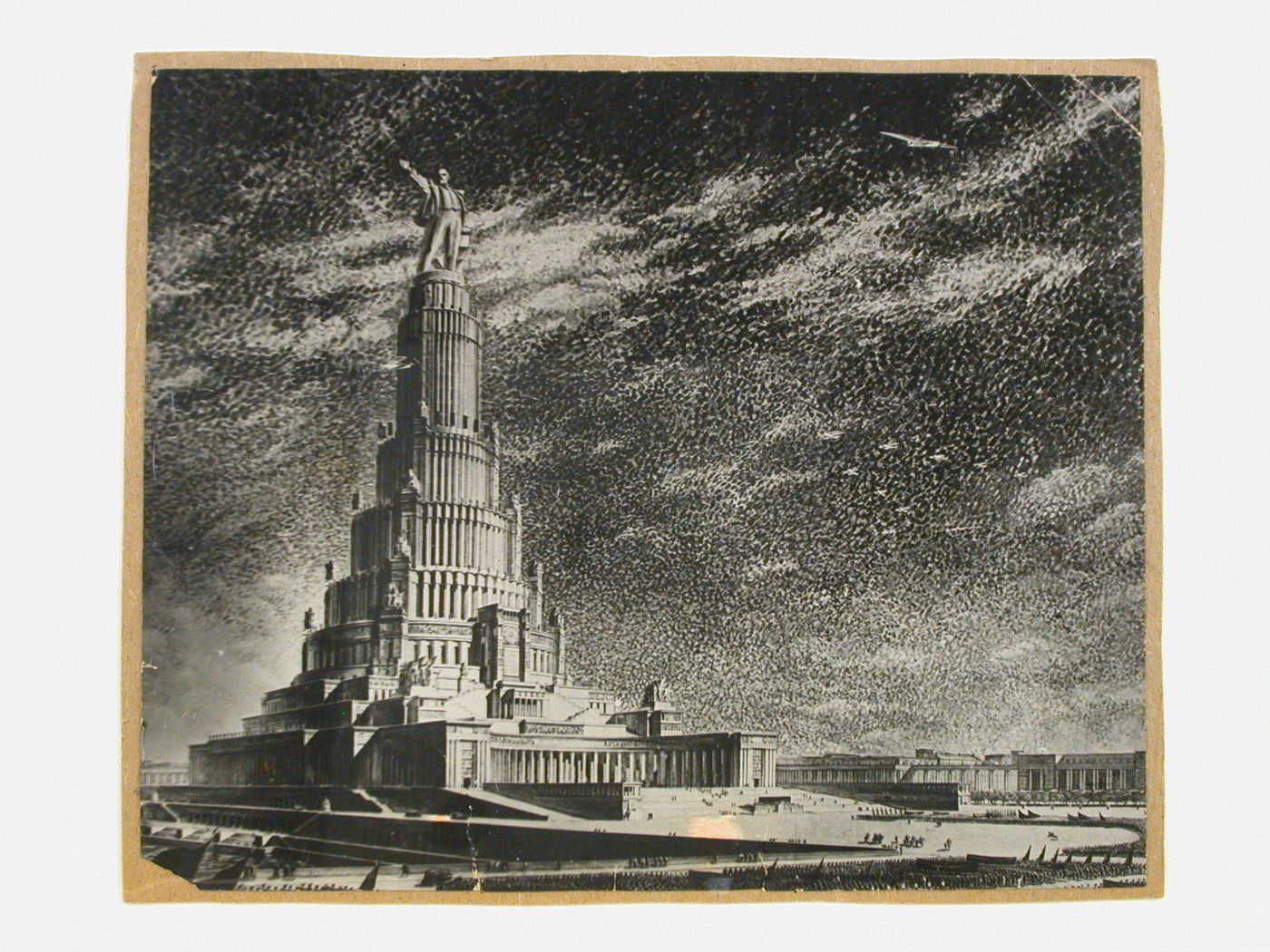 Photograph of a perspective drawing for a Palace of Soviets, Moscow