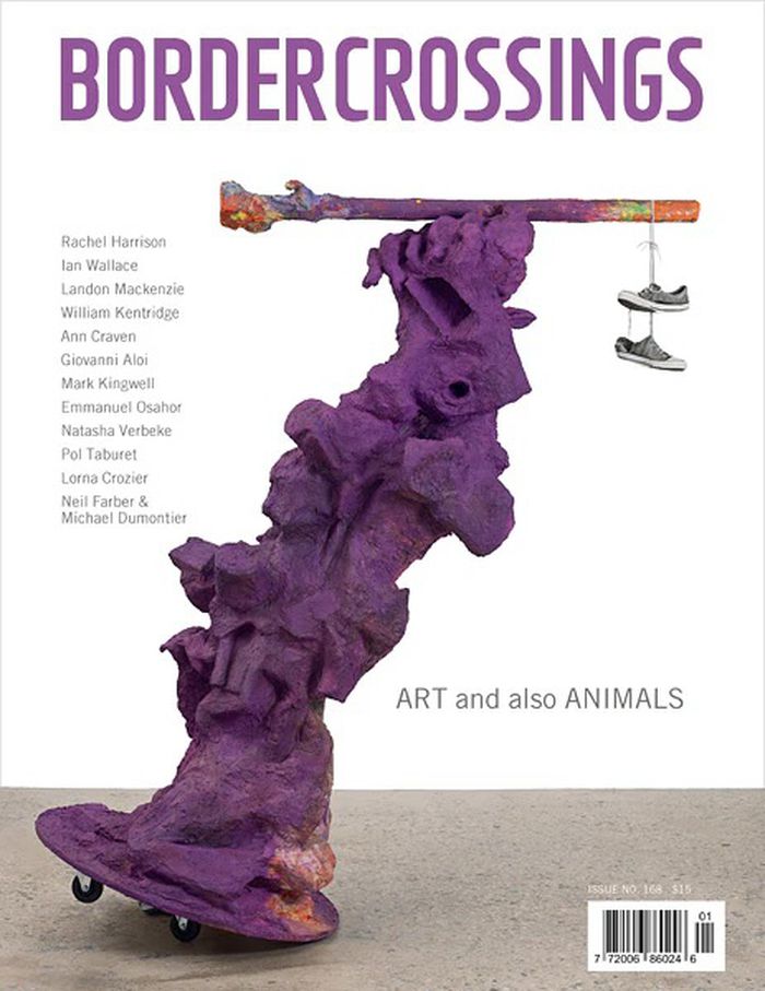 The thematic subject of this issue, while not dogmatic or narrow, does include a number of dogs and refers broadly to a correction of our estrangement from animals. The best "fixers" for this limiting, damaging gulf—between humans and animals—are artists. "Estrangement" is chosen with deliberation; it wasn’t always so. Let’s believe instead in a Paradisal prehistory and make efforts to return there. So: artist, animals, artist and animals.