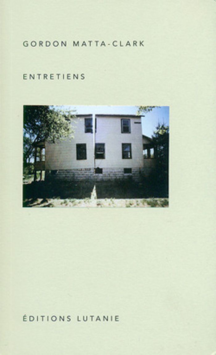 *** Malheureusement, ce livre est épuisé et il n'est plus disponible. *** Quand je détruis un bâtiment, je m’élève contre de multiples aspects de la condition sociale : j’ouvre un espace clos, conditionné non seulement par une nécessité physique, mais aussi par l’industrie qui prodigue des "boîtes" [boxes] en ville et en banlieue et s’assure par là même une clientèle passive et isolée – un public virtuellement captif. Gordon Matta-Clark, entretien, 1977 Les Éditions Lutanie ont obtenu les droits pour la traduction et la publication des écrits de Gordon Matta-Clark, jamais publiés en France.