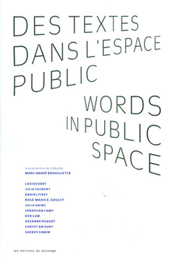 Cet ouvrage collectif interroge la présence de la création littéraire dans l’espace public et la relation qu’y entretiennent les mots et les lieux. Artistes, critiques, historiens et philosophes présentent leurs réflexions autour d’œuvres qui se caractérisent par un usage étonnant de la parole.