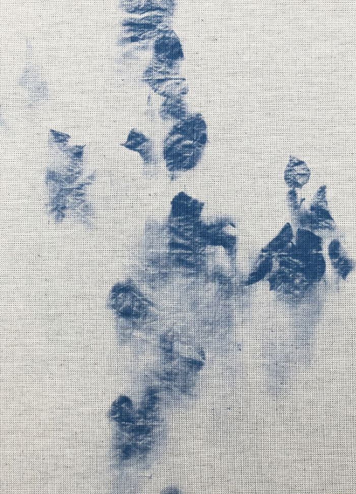This is a publication about seeing versus not seeing, about gender, class and climate, a work about representation and reproduction. In short, a vehicle for perception and togetherness. After leaving an artist in residence in Japan spring 2019 and being back in Amsterdam Markus felt the need for silence and contemplation. Intuitively she built a studio setting in the forest and a photographic process began. It started with a found tarpaulin; the same kind of blue tarp that is a common sight in Japan and if one looks closer most often a shelter for someone homeless appears.