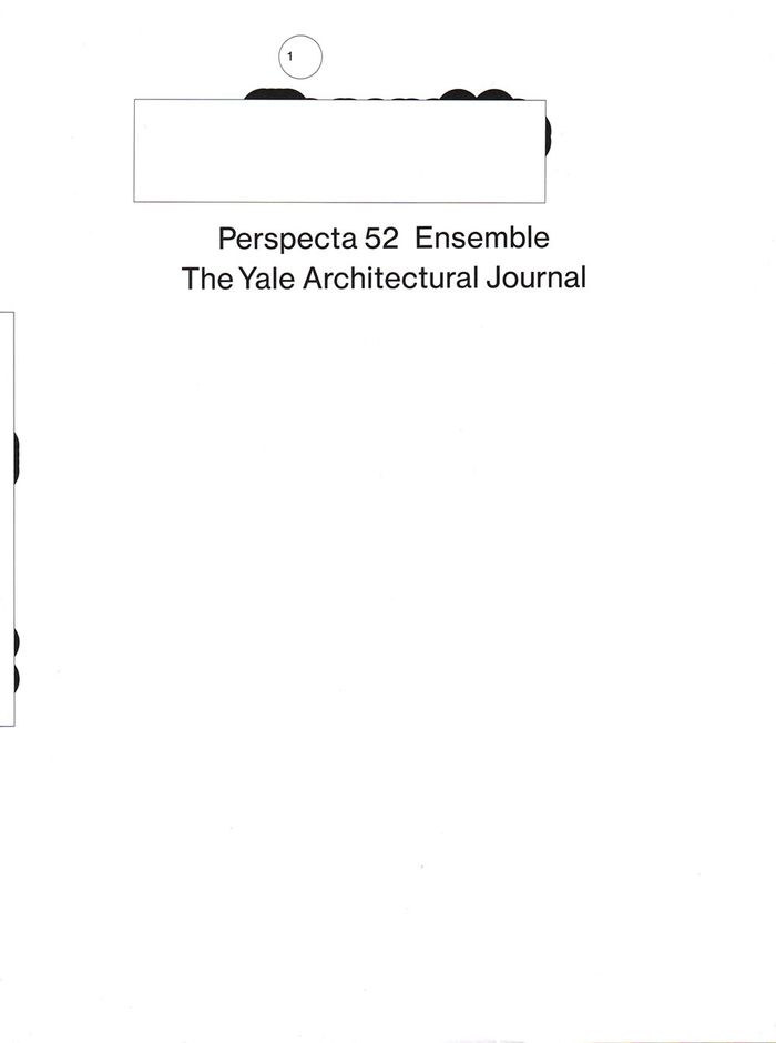 This fifty-second issue of Perspecta is a projective art history of ensemble as form and politics. It uses theories of ensemble to propose both alternative extensive stagings of design objects, as well as other resistant assemblies of the corps of architects. 'Ensemble' is posed a lens to theorize object-parts and states of motion at once, together: an architecture of the city.