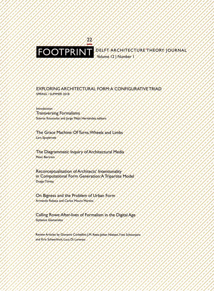 This issue follows a tripartite trajectory regarding formal studies. On the one hand, it includes reflections on the way built form is produced, while, on the other, it gathers studies that examine how architectural form appears in discursive and communicative terms. Finally, it serves as an attractor for multiple inquiries into the different relations that can be established between human actions, understood in the broadest possible terms, and the shape of the built environment. By interrelating these three approaches, the aim is to embrace and braid object-based approaches to form with approaches that examine the reciprocity of formal emergence and studies dealing with in-formation.