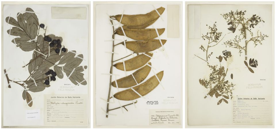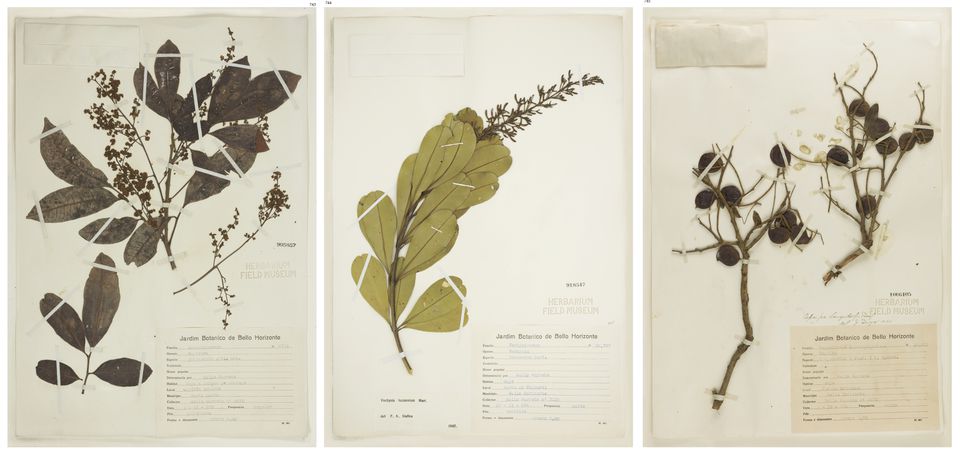 Henrique Lahmeyer de Mello Barreto. Flore native du Minas Gerais (sélection basée sur les espèces identifiées dans l’étude environnementale de Flor de Café, près de Nepomuceno), vers 1935. Avec l’aimable autorisation de The Field Museum, Chicago. De gauche à droite : Matayba elaeagnoides, Platycyamus regnellii, Zanthoxylum rhoifolium