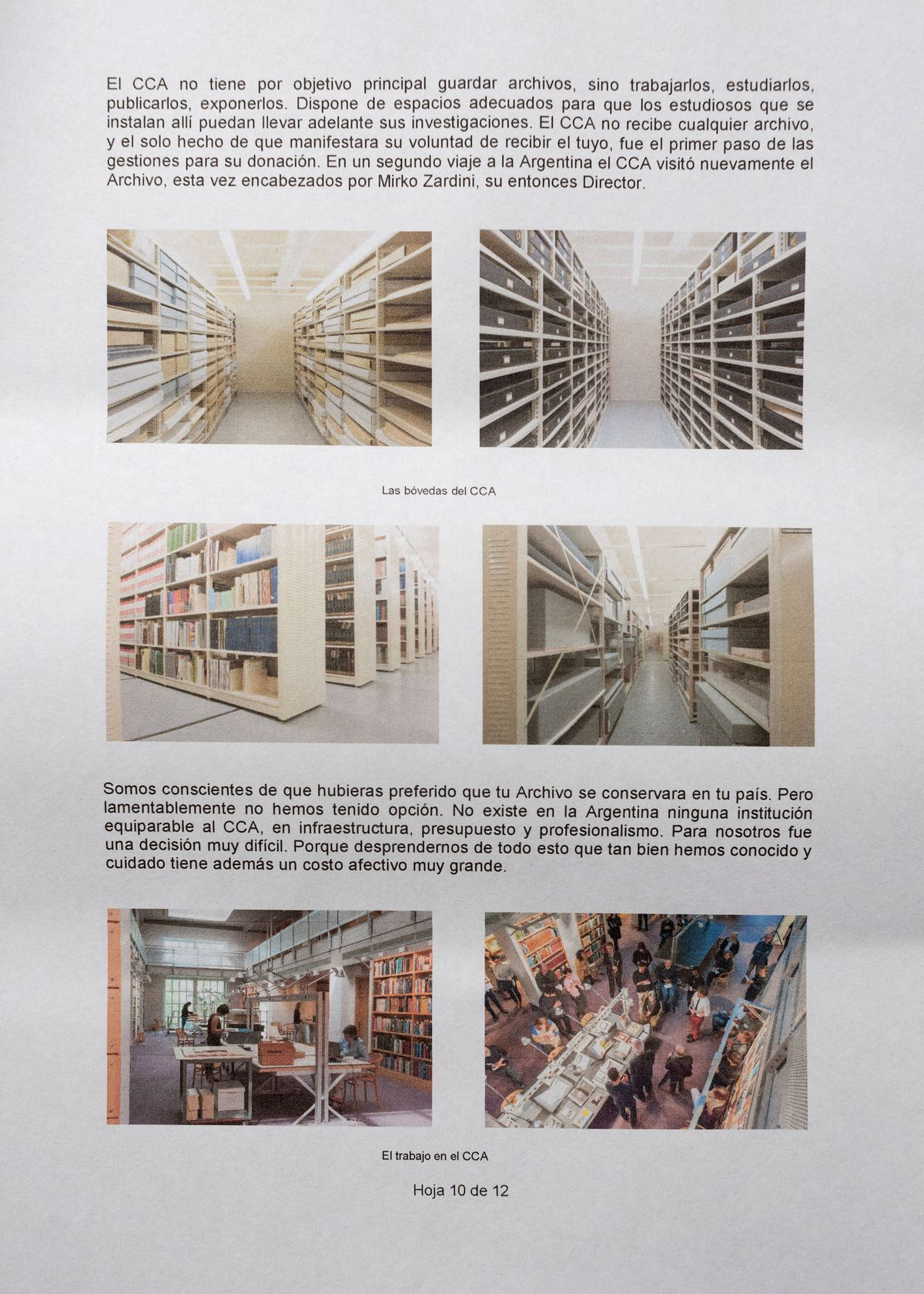 Nous sommes conscients que tu aurais préféré que tes archives se conservent dans ton pays. Mais ce n’est malheureusement pas possible. Il n’existe en Argentine aucune institution comparable au CCA, en ce qui concerne l’infrastructure, le budget et le professionnalisme. Cette décision a été pour nous très difficile. Le fait de se départir de tout ce que nous avons si bien connu et entretenu entraîne un coût affectif non négligeable.
