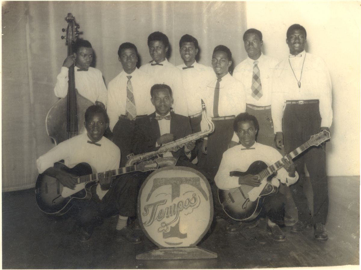 Le jeune Francis Laryea lors d’un bal rock ‘n’ roll sponsorisé par le Black Eagle Club, vers 1960. L’installation libre du groupe et ses vêtements modernes contrastent avec l’orchestre de danse Uhuru, réglementé par l’État. Image tirée de Nate Plageman, « The African Personality Dances Highlife », 2014. Gracieuseté de Nate Plageman © Francis Laryea