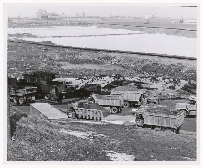 Richard Arless Associates, Vue de camions-benne chargés, Expo 67, Montréal, Québec, vers 1963-1964, tirage gelatino-argentique ARCH255766, CCA. Don de May Cutler © Richard Arless Associates