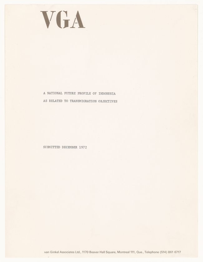 Van Ginkel Associates, “A National Future Profile of Indonesia as Related to Transmigration Objectives submitted December 1972”, 1972, proposition. ARCH259614, CCA © CCA