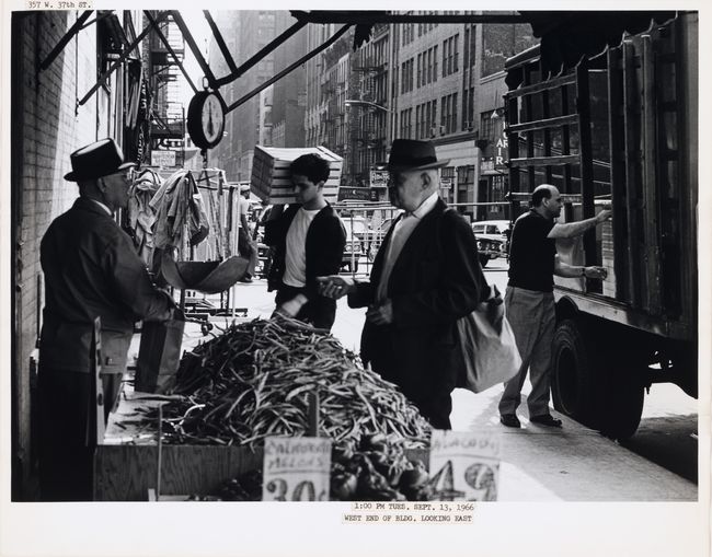 En 1966, Wegman & Co., bureau d’ingénieurs new-yorkais, tente de résoudre le problème de congestion sur l’artère étroite et dense de la 37e Rue Ouest, entre la 8e et la 9er avenue. Dans leur étude intitulée Arcading Side Walks, Wegman & Co. proposent d’éliminer le rez-de-chaussée des édifices afin d’aménager une arcade qui permettrait la libre circulation piétonnière et l’ajout de voies supplémentaires pour les véhicules. Le travail de photographie de John Veltri a été mandaté par le bureau d’ingénieurs dans le but de documenter chaque bâtiment, chaque stationnement et chaque cage d’escalier. John Veltri a fait ce travail entre le 13 et le 18 septembre 1966.
