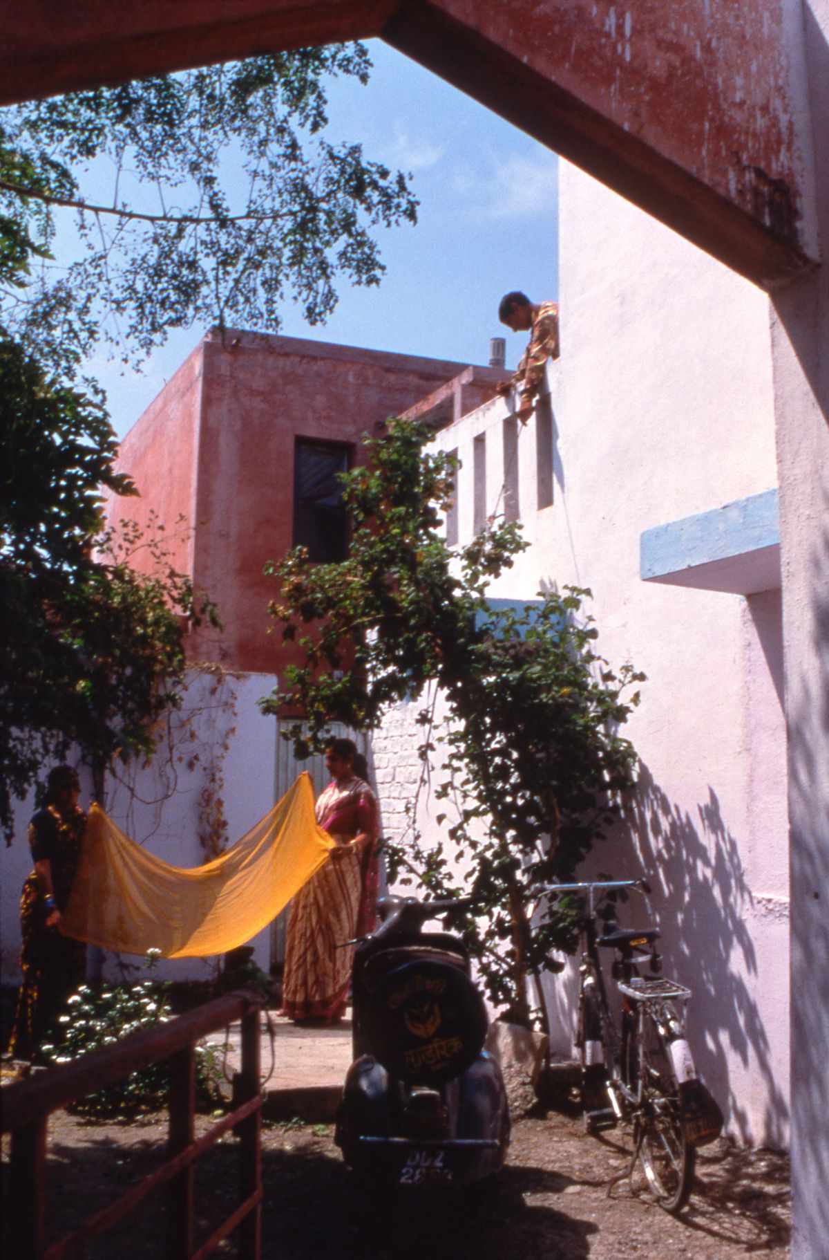 Balkrishna Doshi a commencé sa formation d’architecte en travaillant à Paris avec Le Corbusier de 1951 à 1954, avant de retourner en Inde pour superviser les projets influents de ce dernier à Ahmedabad et créer sa propre agence, Vastushilpa, également à Ahmedabad, en 1956. Dès le début de sa carrière, Doshi s’est impliqué dans la conception de projets d’habitation, notamment des logements sociaux pour le personnel de l’Ahmedabad Textile Industry Research Association (ATIRA). Dans les premières années de l’indépendance de l’Inde, le gouvernement a collaboré avec des entreprises privées pour lancer de nombreux projets nationaux de construction, par exemple le Physical Research Laboratory, la Gujarat State Fertilizer Corporation, l’Indian Farmer’s Fertilizer Company et la Madhya Pradesh Electricity. Ces entreprises étaient souvent situées dans des lieux reculés pour des raisons stratégiques, en particulier l’accès aux ressources, et devaient par conséquent bâtir des hébergements pour leurs employés. Doshi a conçu plusieurs cités industrielles pour ces clients, mais contrairement aux projets de logements sociaux en Inde qui étaient souvent austères, ceux de Doshi débordaient de vie; son architecture permettait à la vie quotidienne de se poursuivre et favorisait l’épanouissement des communautés. Dans son œuvre imposante, c’est avec les projets d’habitation que Doshi s’est le plus approché de la concrétisation de sa vision d’un rôle plus vaste de l’architecte fondé sur la notion de sthapati.