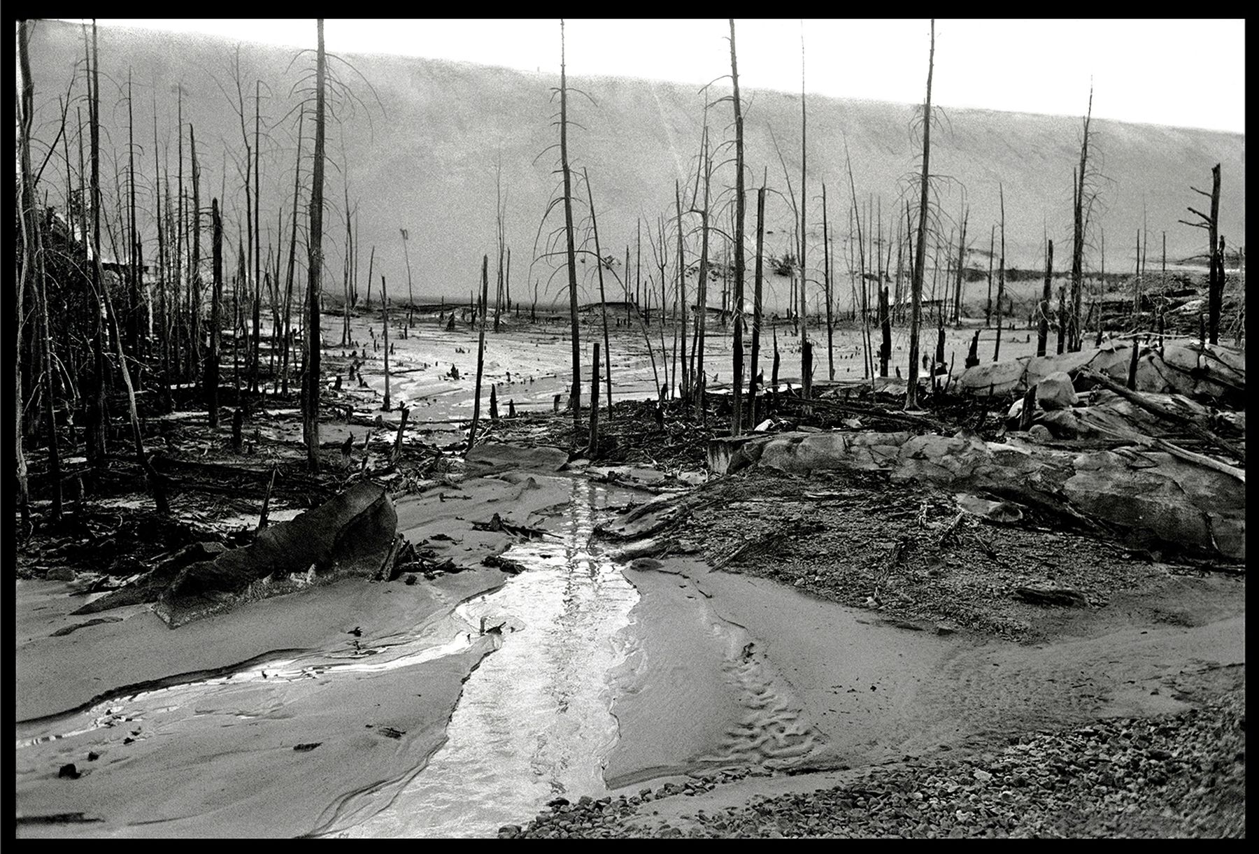 Au milieu des années 1970, on a découvert que des décennies de ruissellements de ces résidus et d’autres de la région avaient mené à une grave contamination du réseau hydrographique de 93 kilomètres de long de la rivière Serpent qui, avec ses dix-huit lacs, se jette dans la baie Georgienne. Des mesures d’atténuation ont été prises depuis la réalisation de cette photographie, mais les résidus resteront dangereux pendant des centaines de milliers d’années durant lesquelles ils devront être surveillés en permanence. Le Canada abrite en tout deux cent vingt-cinq millions de tonnes de résidus de traitement de l’uranium, un nombre qui augmente année après année.