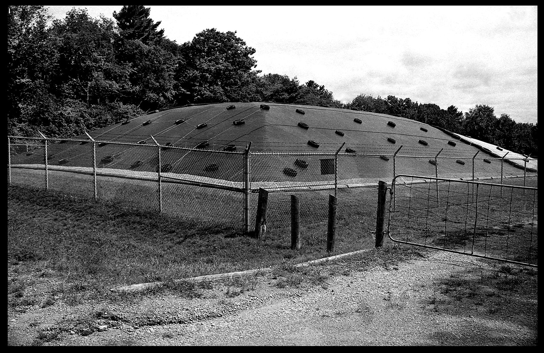 Après avoir été fermée pendant des dizaines d’années, la zone de Monkey Mountain a accueilli temporairement deux cent mille mètres cubes de déchets radioactifs en provenance de Port Hope. Ils sont maintenant stockés dans cinq sites attenants. Le monticule sur la photo porte le nom de Pad I (plateforme no 1) et il contient six mille mètres cubes de déchets. Depuis que cette photo a été prise, un autre tas (Pad II) de six mille mètres cubes de déchets s’est ajouté à proximité. En outre, la zone de Monkey Mountain comprend le site d’enfouissement de Highland Drive, avec cinquante mille mètres cubes de déchets, et la Pine Street Extension Road Bed, avec une route réalisée à partir de sept mille mètres cubes de résidus radioactifs. Cette concentration de déchets est à distance de marche de l’école secondaire de Port Hope.