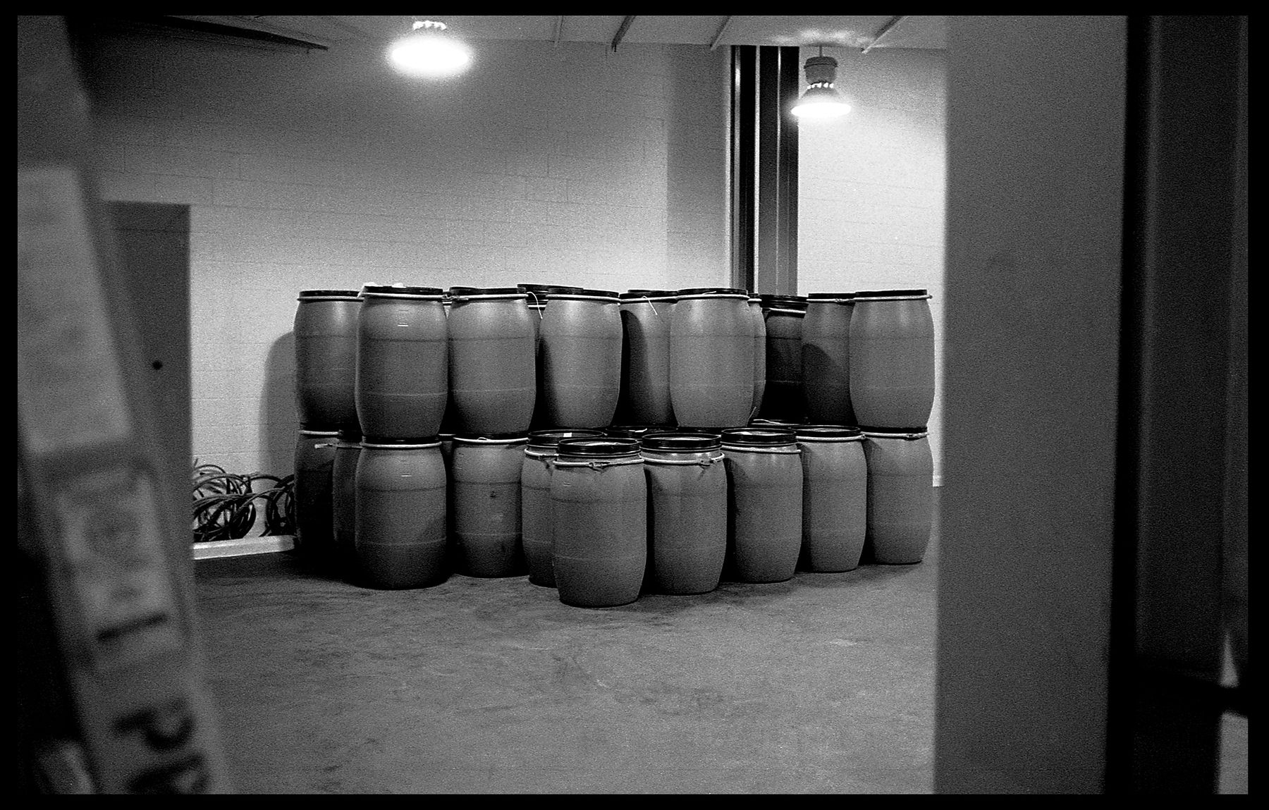 Ces barils de plastique contiennent des déchets chimiques et radioactifs provenant de l’exploitation de la raffinerie de Blind River, qui traite le minerai d’uranium depuis 1983. Le cocktail comprend du radium, du thorium, du radon et du polonium. Les ouvriers de l’usine utilisent le terme « brut » pour décrire ces déchets et désignent l’uranium raffiné produit sous le terme anglais de « OK Liquor ». Il s’agit d’un gel de trioxyde d’uranium; acheminé dans des barils à Port Hope, il est converti en dioxyde d’uranium ou en hexafluorure d’uranium.