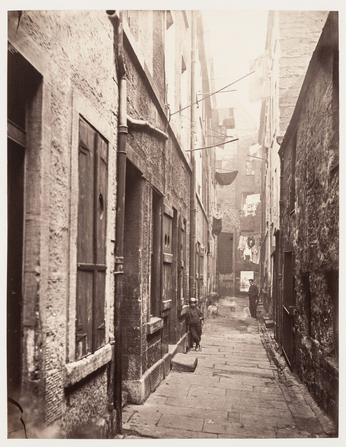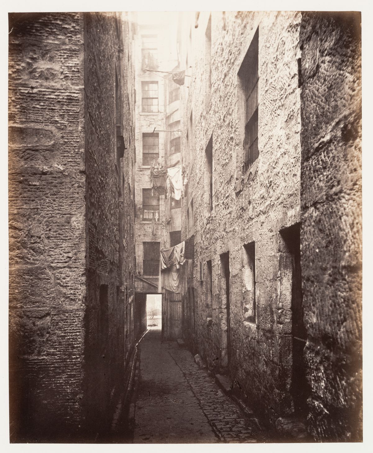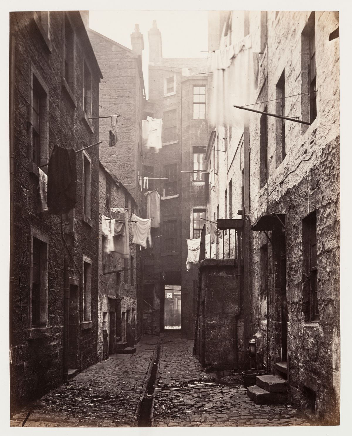 À Glasgow, les conditions de vie misérables d’une population vivant entassée dans des logements insalubres poussent le conseil municipal à adopter le Glasgow City Improvements Act de 1866. Cette politique, à l’origine d’une des premières réformes sur l’hygiène publique, a pour but d’abattre les taudis des quartiers les plus pauvres de la vieille ville et de permettre le développement urbain. Le photographe Thomas Annan reçoit du Glasgow City Improvement Trust le mandat de documenter les bâtiments condamnés et les passages étroits des bas quartiers sur le point disparaître. Les 31 épreuves à l’albumine originales réalisées par Annan entre 1868 et 1871, ont été rassemblées dans un album.