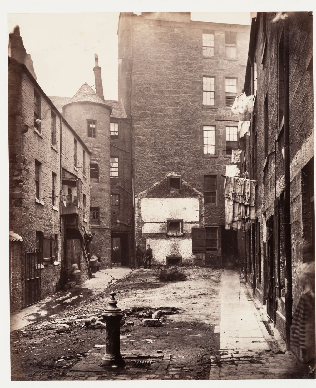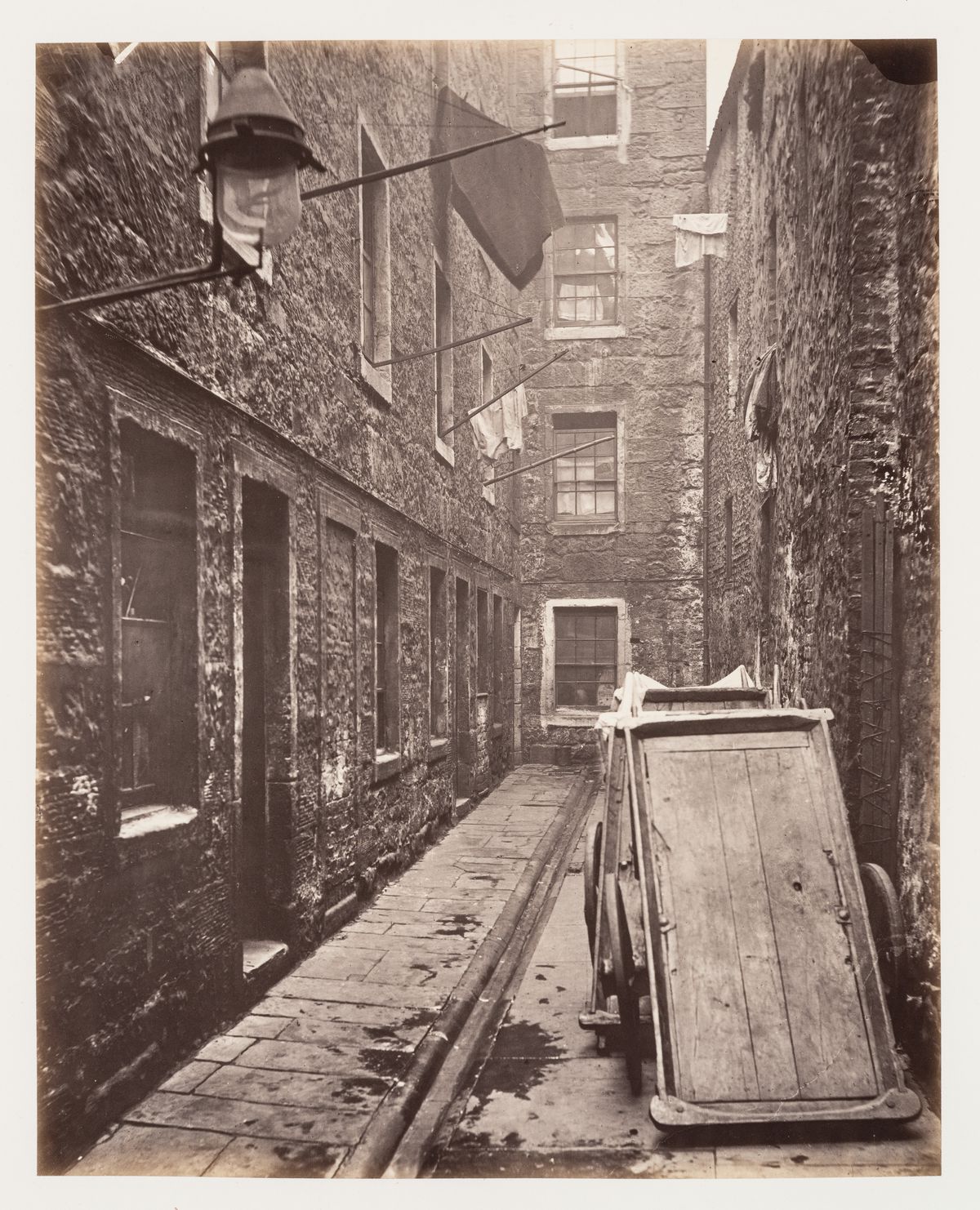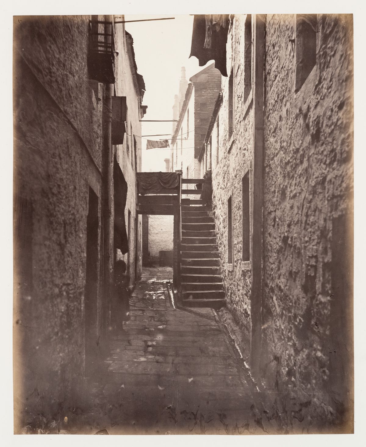 À Glasgow, les conditions de vie misérables d’une population vivant entassée dans des logements insalubres poussent le conseil municipal à adopter le Glasgow City Improvements Act de 1866. Cette politique, à l’origine d’une des premières réformes sur l’hygiène publique, a pour but d’abattre les taudis des quartiers les plus pauvres de la vieille ville et de permettre le développement urbain. Le photographe Thomas Annan reçoit du Glasgow City Improvement Trust le mandat de documenter les bâtiments condamnés et les passages étroits des bas quartiers sur le point disparaître. Les 31 épreuves à l’albumine originales réalisées par Annan entre 1868 et 1871, ont été rassemblées dans un album.