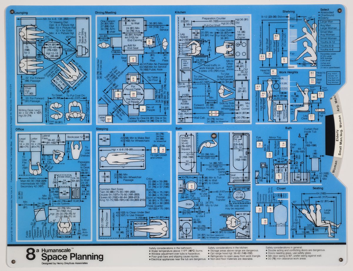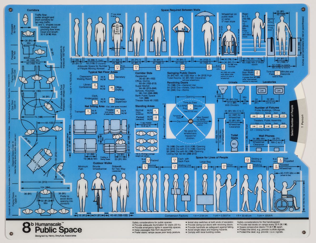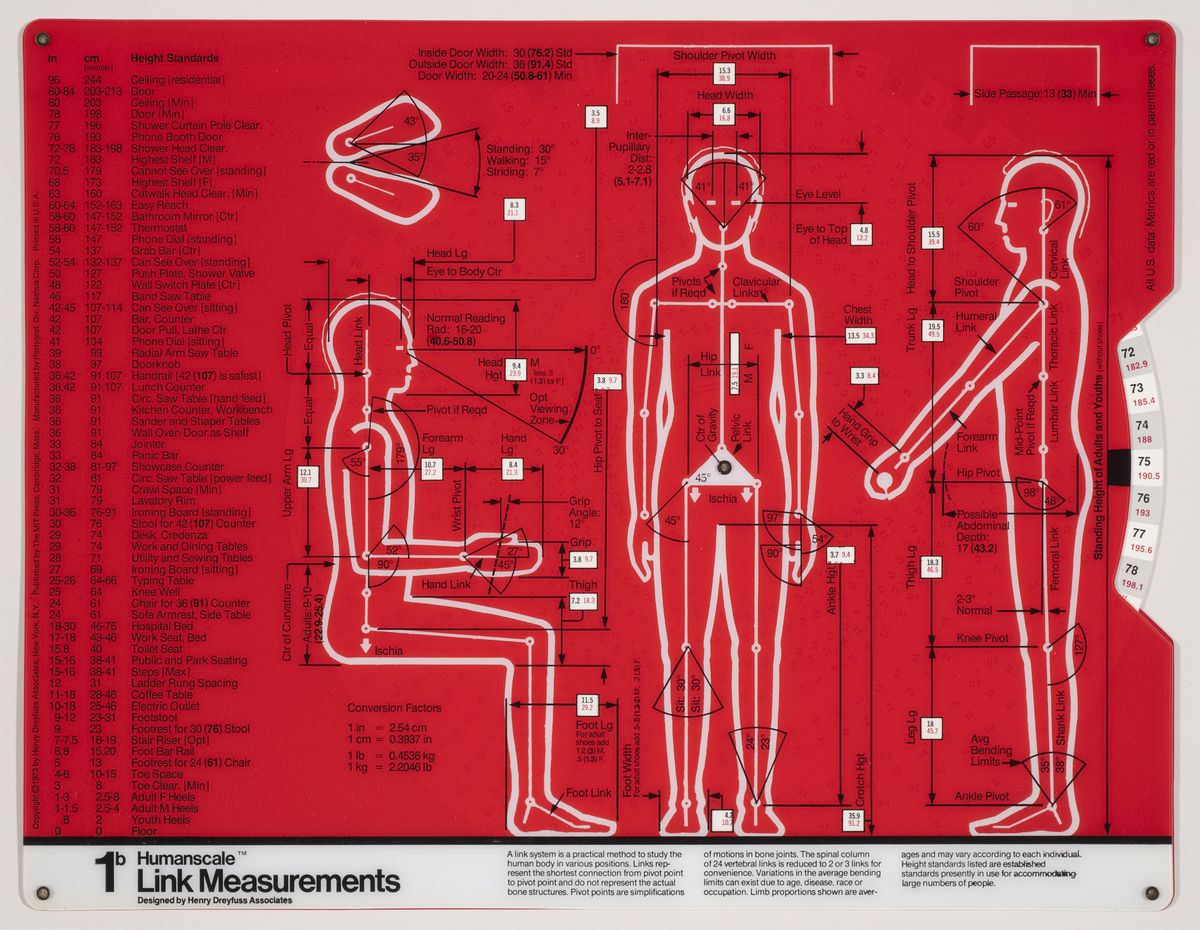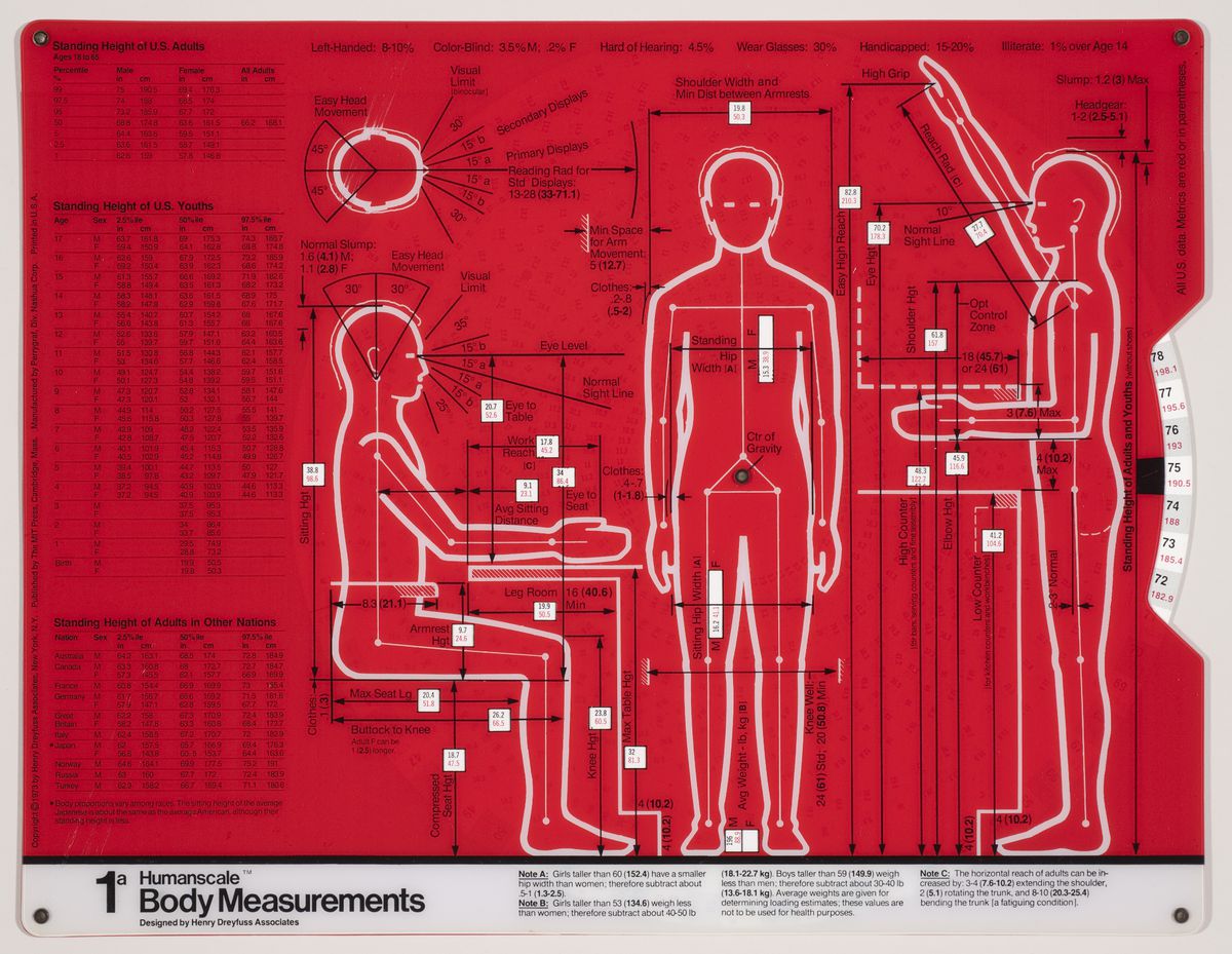 Les caractéristiques et mensurations des corps humains d’aujourd’hui sont très différentes de celles d’il y a un siècle ou même, d’il y a une cinquantaine d’années à peine. Les mensurations indiquées par le designer industriel Henry Dreyfuss après la Seconde Guerre mondiale ne semblent plus correspondre aux exigences contemporaines. Les dimensions ont changé à tel point que divers projets sont en cours pour étudier les nouveaux corps masculins afin de redéfinir correctement les tailles des vêtements pour hommes. D’après le designer Umberto Angeloni,