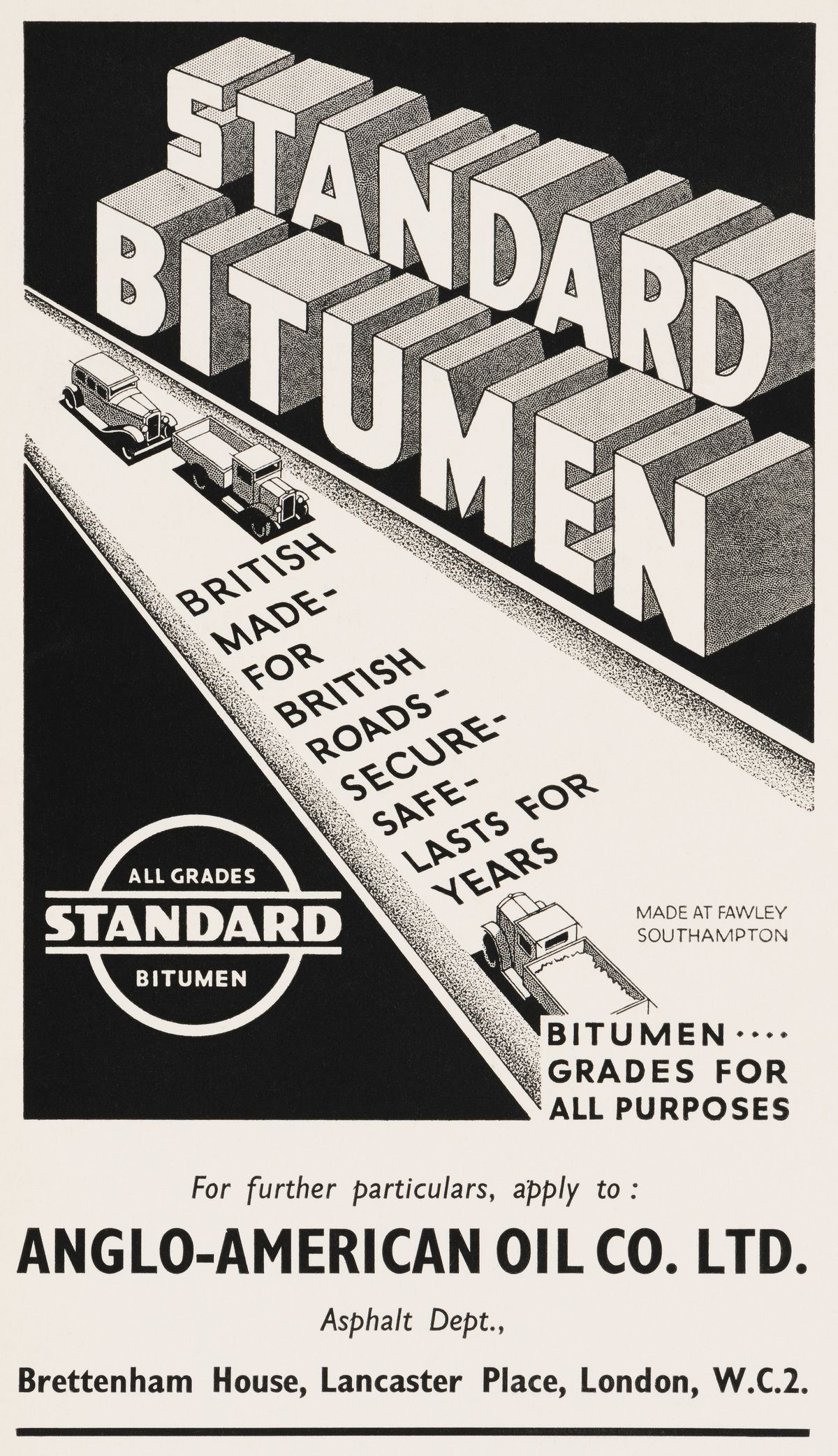 Au fil du temps, le rôle d’« enveloppe » protectrice joué par l’asphalte s’est élargi de la surface des rues aux planchers, aux murs et, surtout, aux toits des bâtiments. Dans ce cas-ci, les propriétés d’imperméabilité du matériau ont été essentielles. C’est grâce à ce potentiel de créer une chape isolante que le toit plat moderne a fait son apparition. Avant même que Jacobus Johannes Pieter Oud n’arrive avec une proposition de toiture-terrasse7, les premiers essais de chape bitumineuse sur des toits plats étaient menés en France au début du XIXe siècle pour démontrer le durcissement et la stabilisation progressifs de la croûte terrestre elle-même. L’engouement pour l’asphalte était tel que de nombreuses publicités parues dans la revue du Touring Club Italiano au cours des années 1920 et 1930 présentaient des images de rues ou places célèbres en Italie couvertes d’asphalte, de la Via Strozzi à Florence à la Piazza del Campidoglio à Rome, confirmant la valeur positive généralement associée à la nouvelle surface urbaine moderne. Et quand, dans les années 1940, une nouvelle usine de production d’asphalte (conçue par les architectes Ely Jacques Kahn et Robert Allan Jacobs, et construite par les ingénieurs Syska & Hennessy) a été inaugurée à New York, Robert Moses la qualifia ironiquement de « cathédrale de l’asphalte8 ». Dans un certain sens, l’asphalte est devenu une véritable « religion » avec ses adeptes, dont l’auteur Pedro Juan Manuel Larrañaga, qui, dans son livre de 1926 sur les différents aspects techniques du fameux matériau, évoquait la naissance d’une nouvelle ère dans laquelle « une surface routière propre, à l’épreuve des intempéries, devient vecteur de civilisation […] et lieu de convergence de la démocratie », et dans laquelle « chaque membre d’une entreprise d’asphaltage se doit d’avoir une fois inébranlable dans le noble idéal de sa mission et la haute destinée de son travail9 ».