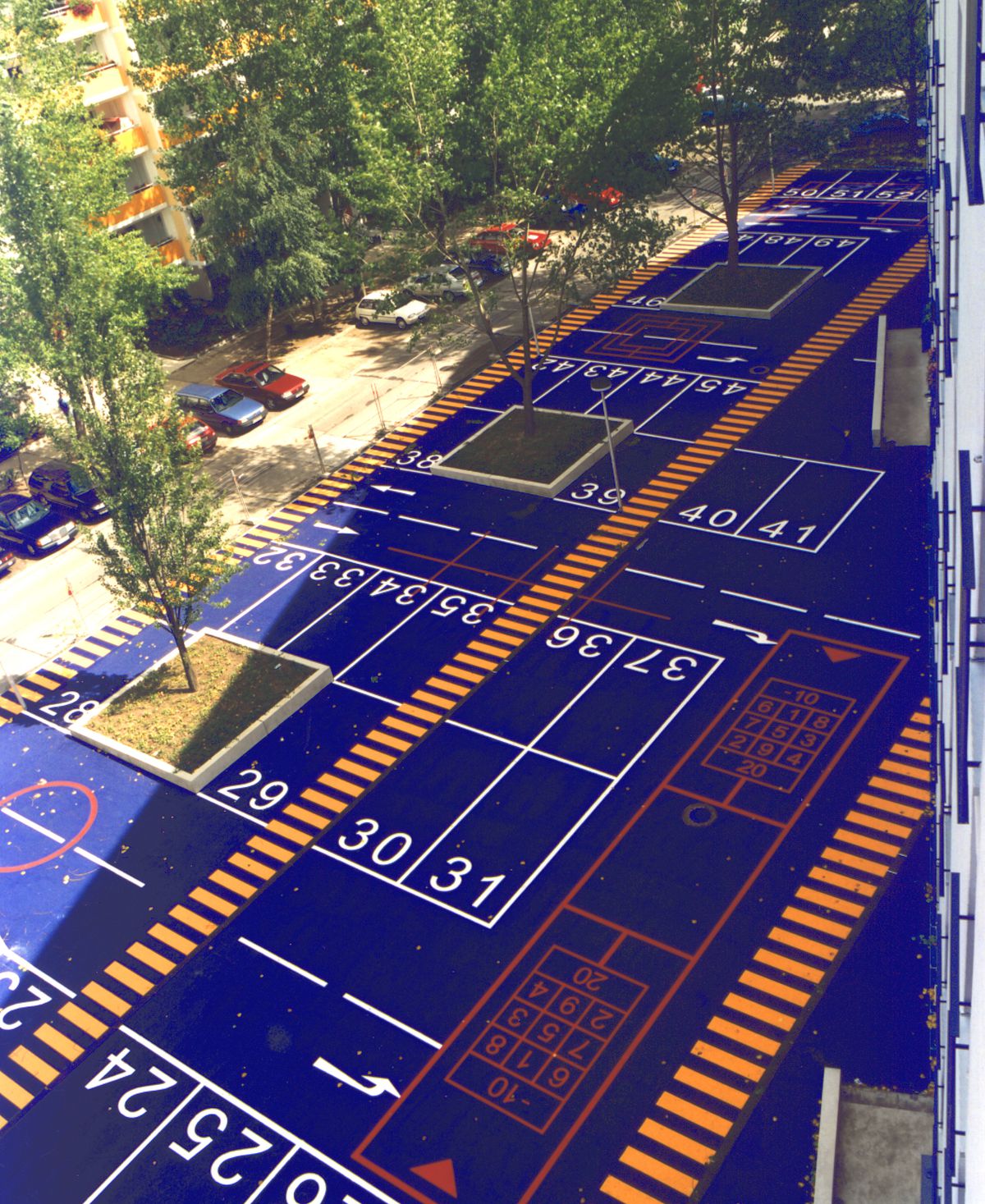 De toutes ses propriétés, seule la capacité de l’asphalte à réduire la friction, avec le potentiel de gain en vitesse qui en découle, est aujourd’hui encore estimée, même si c’est parfois avec une certaine ambivalence, puisque de plus en plus de chaussées urbaines sont ponctuées de ralentisseurs (dos d’âne, saillies de trottoir, écluses, îlots directionnels et chicanes). Des mouvements ciblés de « dépavage », qui militent en faveur du démantèlement des surfaces asphaltées ou bétonnées et de leur plateforme (en particulier en Californie), sont révélateurs d’une perception générale selon laquelle une trop grande surface des veilles d’aujourd’hui a été réservée à la circulation ou au stationnement de véhicules dans les villes d’aujourd’hui; les promoteurs du dépavage suggèrent de convertir ces surfaces en espaces autrement utiles, comme des sentiers piétonniers ou des promenades, des places, des parcs, des terrains de jeu, des jardins ornementaux ou communautaires, ou encore des fermes urbaines3. En même temps, urbanistes et concepteurs-paysagistes se servent de l’asphalte pour couvrir les surfaces de certains de ces équipements, mais souvent en utilisant des codes de couleur pour différencier les utilisations piétonne et automobile.