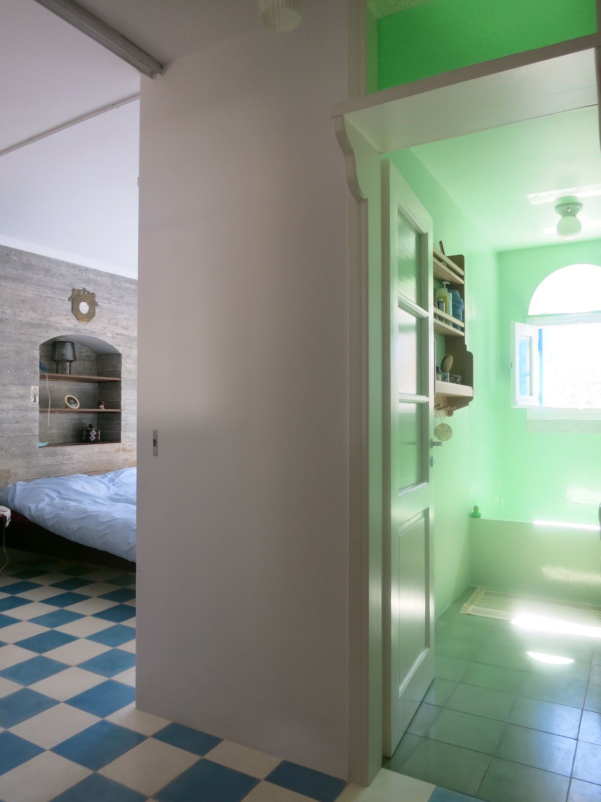 Parfois, je me dis qu’il serait intéressant de montrer un projet tel qu’il a été conçu au départ, et ensuite la manière dont il a été réalisé, une fois qu’on a introduit les différentes sources de matériaux. Au départ, tout cela se fait bien sûr un peu au hasard. La maison Petralona était conçue très différemment : les ouvertures, les fenêtres, les portes n’étaient pas les mêmes. Tous ces éléments ont dû être refaits une fois que nous avons trouvé des portes particulières.