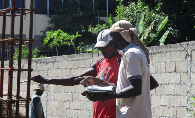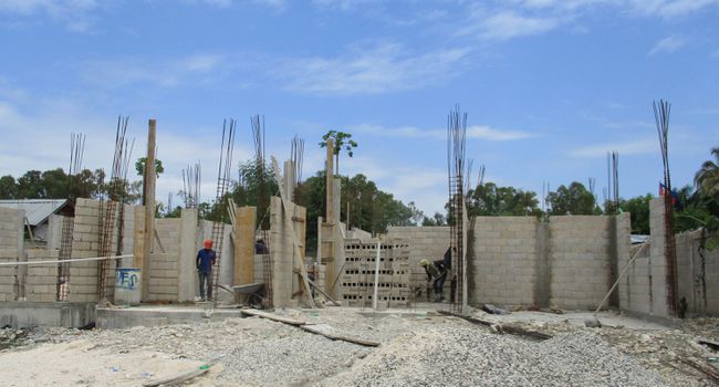 Bòs Thomas est un bòsmason (entrepreneur en maçonnerie) qui a conçu la maison que l’on voit ici en construction dans la section Gran Rivyè de Leyogàn, en Ayiti (Haïti)1. À l’occasion d’une entrevue portant sur sa pratique professionnelle réalisée pour ma thèse en 2017, Bòs Thomas expliquait comment sa formation l’a préparé à lire les plans d’étage et à les trase ou les dessiner, mais il faisait une distinction avec la façon dont les architectes conçoivent les plans2. Bien qu’il n’ait pas précisé quelle pouvait bien être cette différence indicible entre un plan d’architecte et le sien, une division entre les formations en design et en métier manuel est implicite. Néanmoins, dans une culture du bâtiment presque entièrement dominée par la construction en blocs de béton, il reste que les bòsmasons jouent à bien des égards le rôle de l’architecte en pratique, si ce n’est en profession. En dehors de quelques bâtiments résidentiels haut de gamme, commerciaux ou institutionnels, la plupart des constructions en Haïti sont réalisées – et conçues – par des ingénieurs, des entrepreneurs ou des propriétaires occupants. En dessinant les plans d’étages, ils ou elles instituent une architecture kreyòle qui tisse ensemble des influences distribuées et diverses.