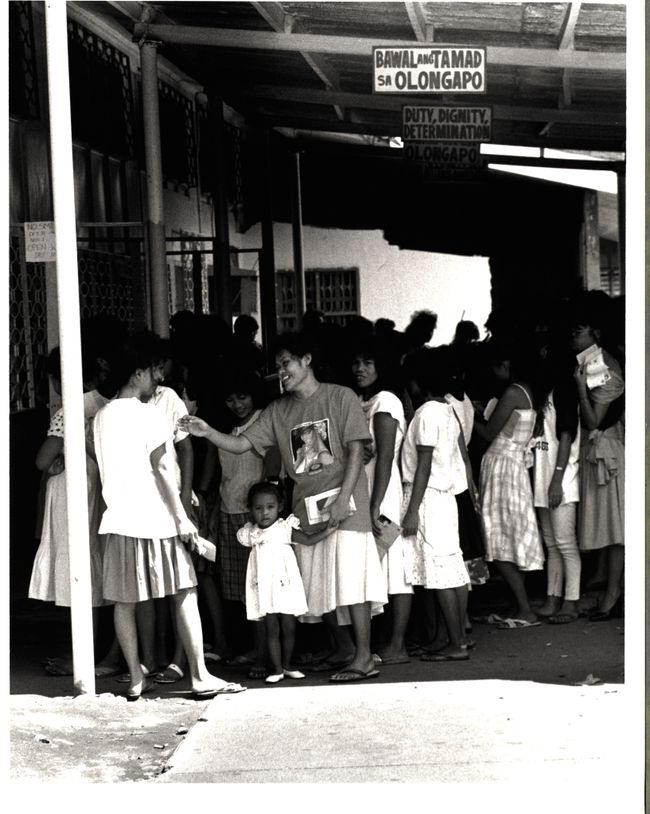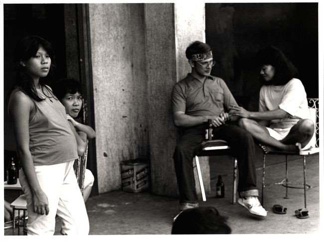 La rue, le bar, la casa et la clinique aident à mettre en lumière le fonctionnement de ce phénomène. L’information les concernant a été compilée à partir de deux sources primaires : la première est un rapport de 1990 intitulé Women Entertainers in Angeles and Olongapo et la seconde, publiée en 2001, a pour titre Halfway Through the Circle. Toutes deux ont été produites par la WEDPRO, et alors que la première est un document détaillant la structure organisationnelle du travail du sexe autour des bases s’appuyant sur une étude menée auprès de 150 femmes d’Olongapo, la deuxième est une série de huit récits oraux de survivantes de la traite sexuelle7. Il y a également, accompagnant le présent article, trois clichés pris à Olongapo par Saundra Sturdevant, une photographe et militante qui a documenté la prostitution dans les villes de garnison vue sous l’angle des femmes au cours des années 1980 et 19908.