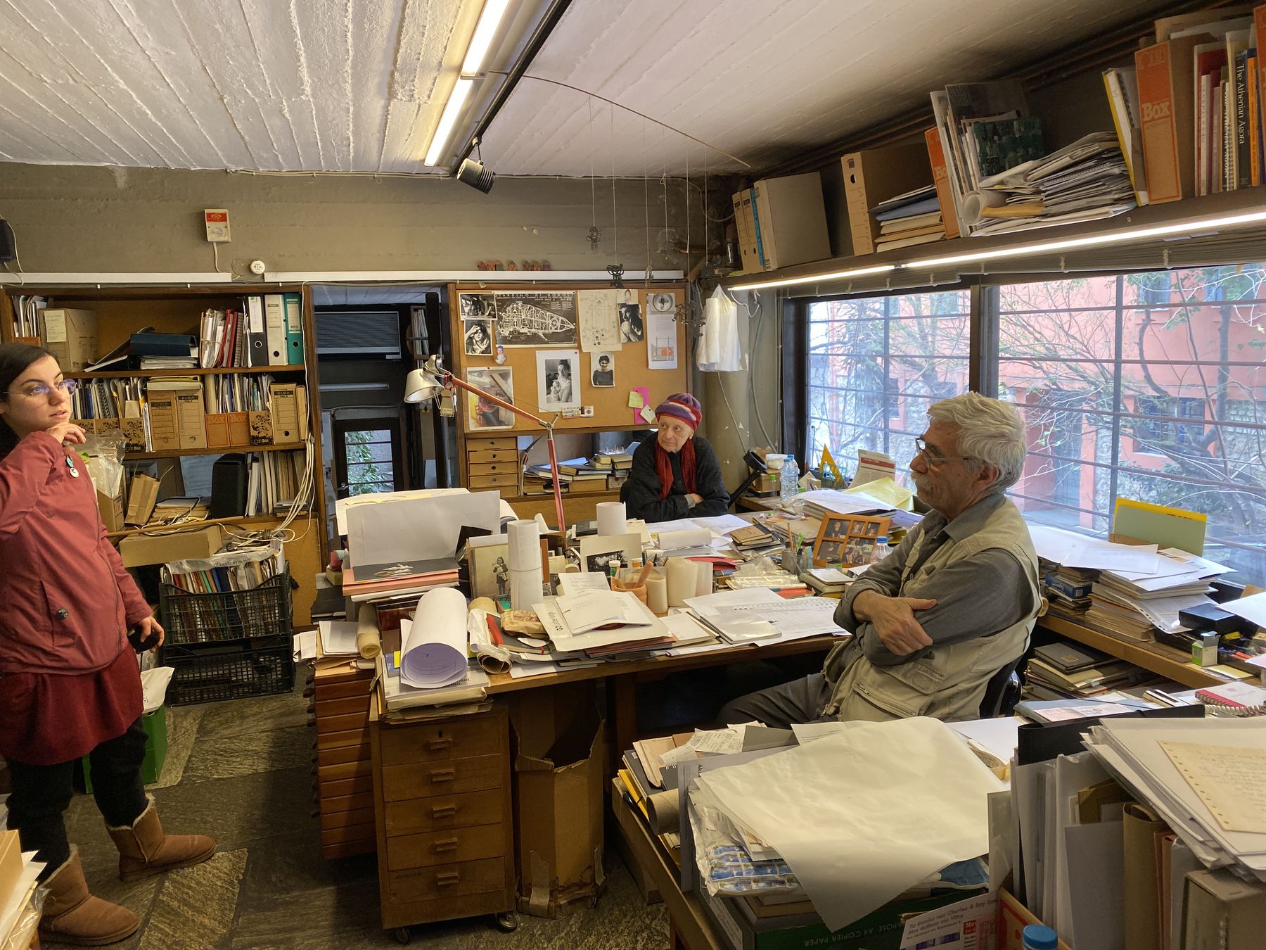 Après une absence de vingt-cinq ans, je suis retournée en Grèce en 2019 pour y explorer la création de bâtiments dans une région frontalière disputée depuis des siècles. J’ai séjourné brièvement dans un studio sur les toits à Emmanuel Benaki 118 (EB 118), qui abrite également les bureaux des architectes du musée de Chios et qui est le lieu de résidence de deux des membres fondateurs de l’agence, Suzana et Dimitri Antonakakis. Lorsque l’on arrive devant le bâtiment, une entrée/une porte sur la rue donne accès à une cour ouverte qui fait office de vestibule. De là, un escalier en colimaçon s’élève le long de l’édifice à l’angle de la parcelle surplombant la rue Emmanuel Benaki, donnant alternativement sur l’intérieur et l’extérieur pendant toute la montée, le long d’une balustrade effleurant le bord de la voie publique. Le palier d’ascenseur au sixième étage est situé à l’intérieur; le dernier étage débouche aussi sur l’extérieur. Même l’intérieur du studio ne semble que partiellement clos : un pan de verre continu et un grand puits de lumière donnent à l’ensemble l’impression d’être au grand air.