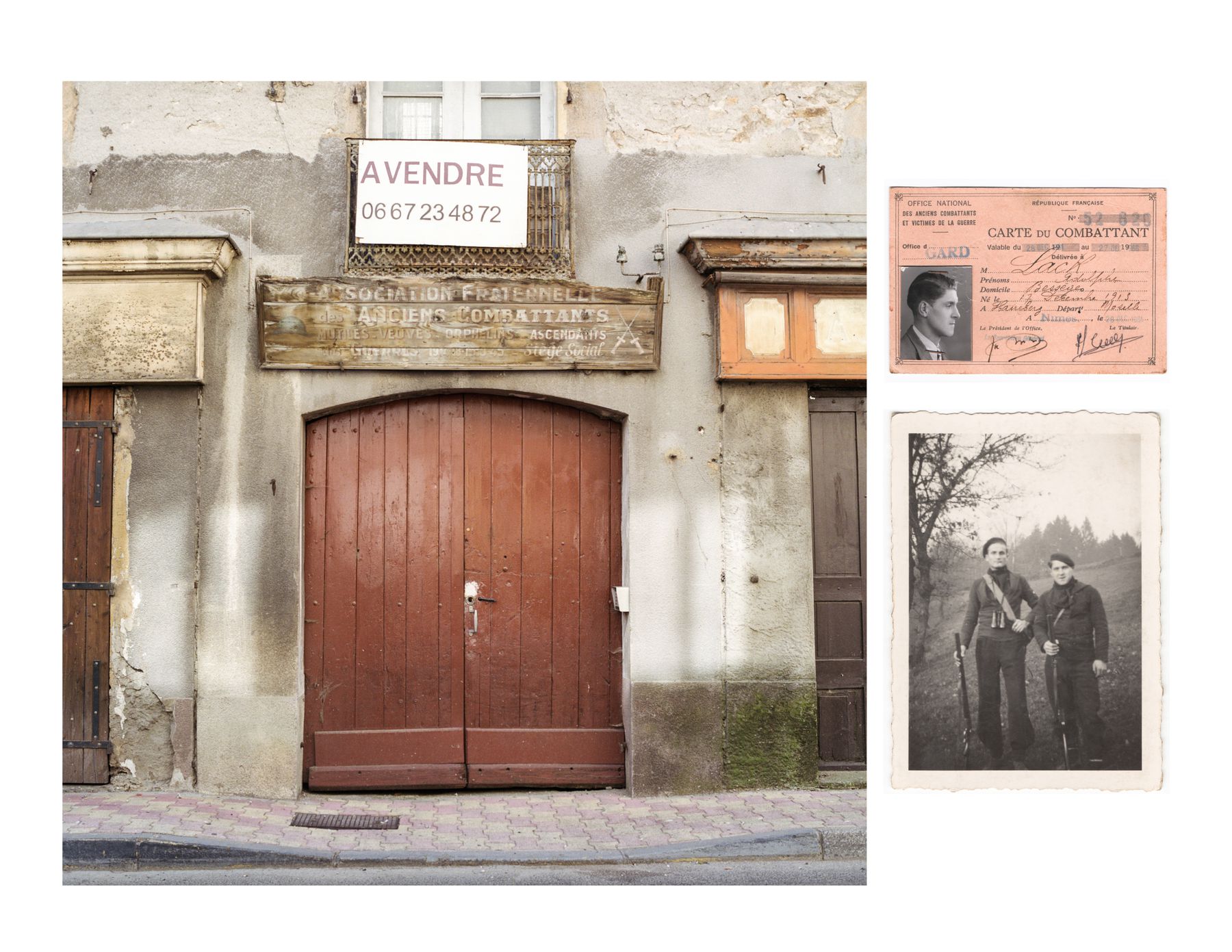 - Gauche) Sophie Bertrand, siège social des anciens combattants des guerres 1914-1918 et 1939-1945, Bessèges, 2013. © Sophie Bertrand. (Droite) Archive (photographie), Cévennes, vers 1942-1944. © Archives Lack/Bertrand