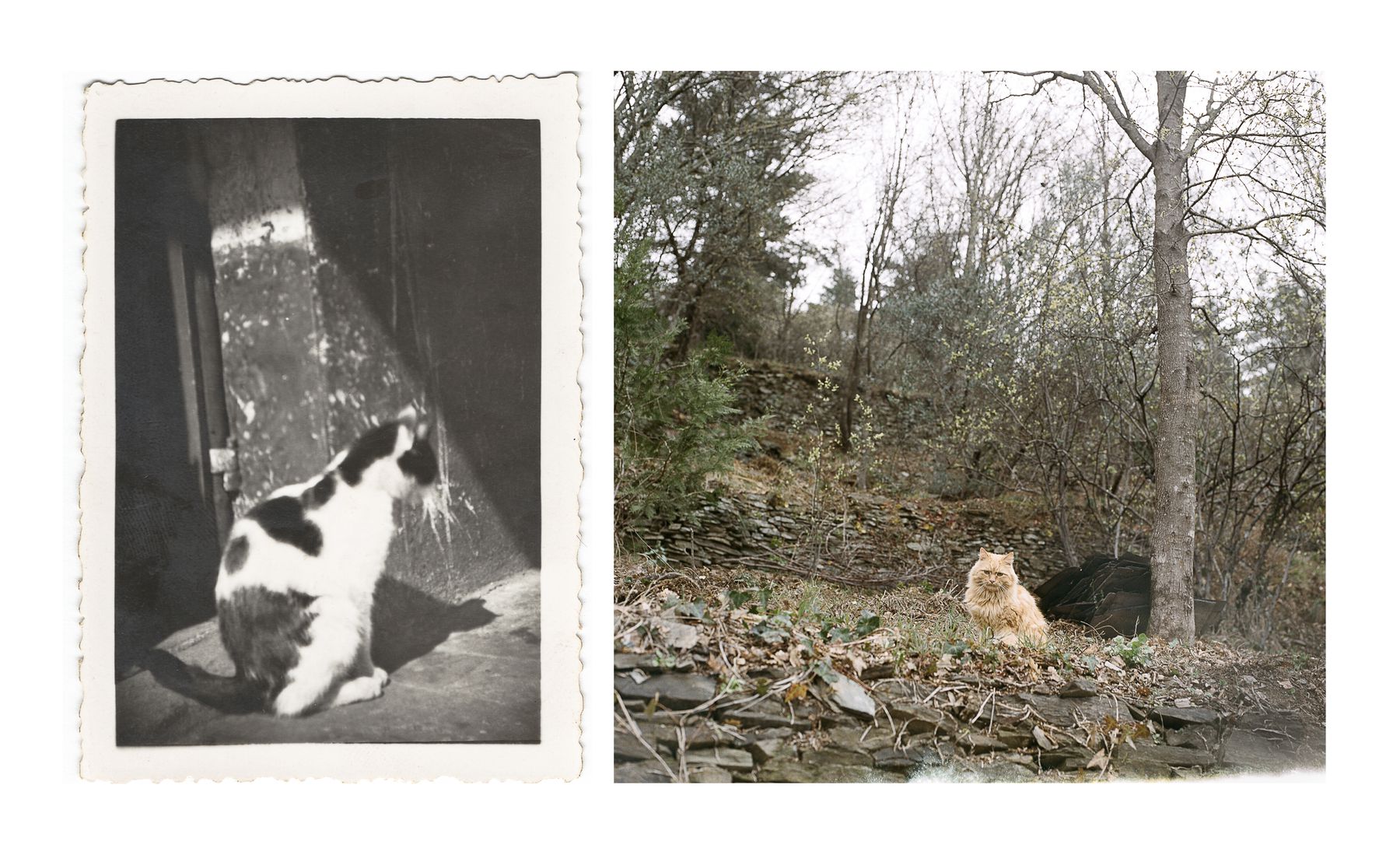 - (Gauche) Chat, 1940. © Archives Lack/Bertrand. (Droite) Sophie Bertrand, Région du Vigan, 2016. © Sophie Bertrand