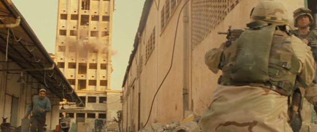 Dans le film d’action Green Zone (2010), Bagdad est pareillement tournée ailleurs, en l’occurrence dans différents lieux du Maroc4. Bien qu’elle ne soit pas aussi cohérente ou monolithique que les Bagdad vus dans d’autres films, la ville de Green Zone apparaît à travers des séquences éloquentes, toutes unifiées par un soleil doré et une poussière ocre : le terrain vague, rempli d’infrastructures délabrées; le désarroi d’une ville dense avec un enchevêtrement incompréhensible de circulation et de piétons frénétiques; et la jungle de béton criblée de balles, où de courageuses forces américaines combattent des « extrémistes » qui résistent inexplicablement à une invasion étrangère de leur territoire.