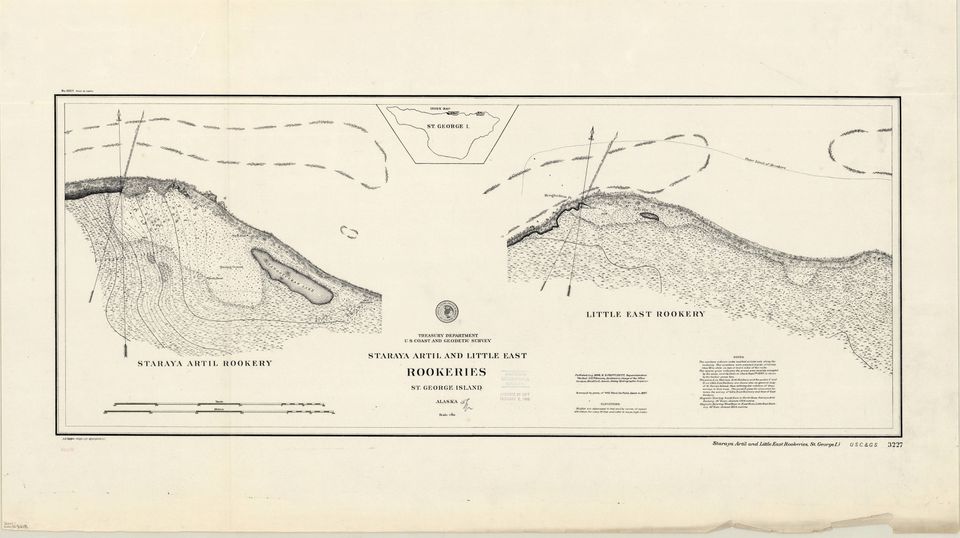 Le groupe des îles Pribilof comprend les îles Saint-Georges, Saint-Paul, Otter et Walrus. ↩
