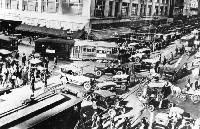 La promotion acharnée [boosterisme] qui occupe le club fait rapidement de l’organisation une victime de son propre succès. En 1920, Los Angeles devient la ville des États-Unis qui compte le plus grand nombre d’accidents mortels liés à l’automobile. Chaque jour de la semaine, plus de 20 000 voitures se disputent la voie publique avec les bicyclettes, les calèches, les tramways et les personnes à pied dans les rues étroites du centre-ville de Los Angeles, récemment classé « Congested District » [« quartier engorgé »]. Ses rues ayant été tracées plus de trente ans avant l’arrivée de l’automobile, il s’est vite retrouvé saturé par les mouvements disparates des différents modes de déplacement, chacun étant guidé par ses propres principes de régulation. Là où les tramways circulaient selon des horaires précis le long de voies prévues à cet effet et où les personnes piétonnes bravaient les rues avant l’installation de signalisations officielles, l’individualisme de l’automobilisme représente une menace apparente pour la santé physique et économique de la ville.