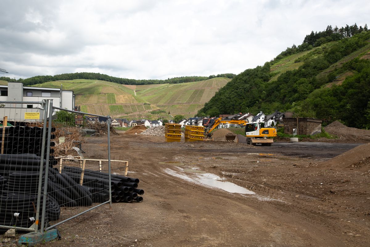 La vallée de l’Ahr a toujours été sujette aux inondations, mais les conditions météorologiques extrêmes liées à la crise climatique accroissent désormais la probabilité de tels phénomènes. Trois ans après la catastrophe, la plupart des habitations ont été reconstruites, mais les travaux d’aménagement du lit de la rivière progressent lentement. La vallée, peuplée par d’innombrables pelleteuses et rythmée par les bruits des travaux, est aujourd’hui « le plus grand chantier d’Allemagne3».