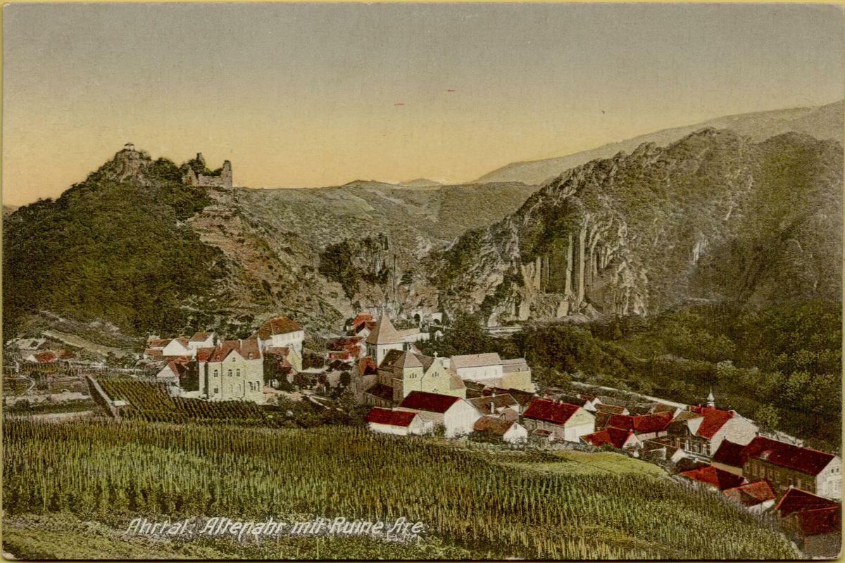 Jürgen Haffke: 200 Jahre Ahrtal-Tourismus Von der “niederrheinischen Schweiz” “zum Paradies für Genießer”, consulté le 31 mai 2024, https://www.rheinische-geschichte.lvr.de/Epochen-und-Themen/Themen/200-jahre-ahrtal-tourismus-von-der-niederrheinischen-schweiz-zum-paradies-fuer-geniesser/DE-2086/lido/57d128fd1a8294.52801302. ↩