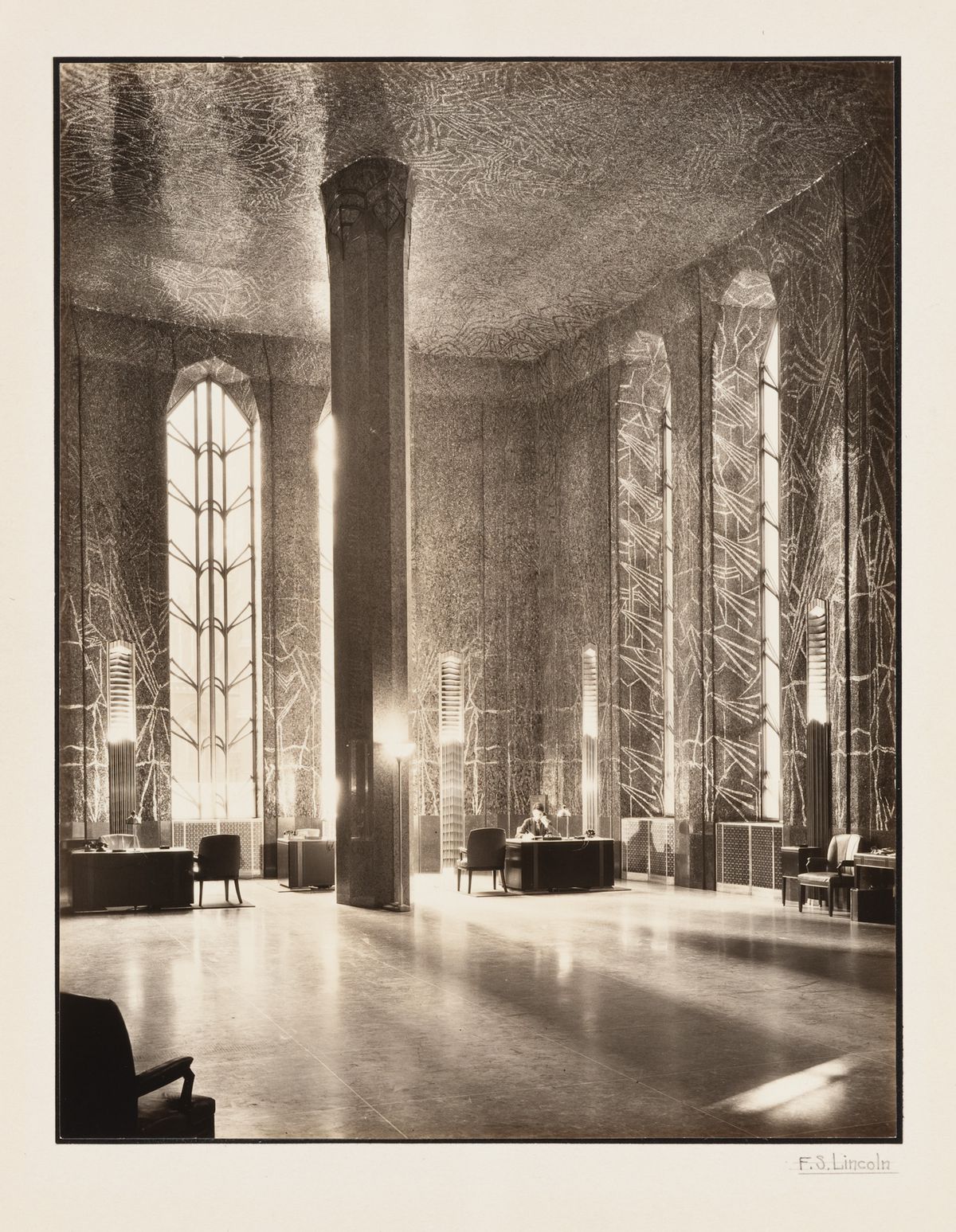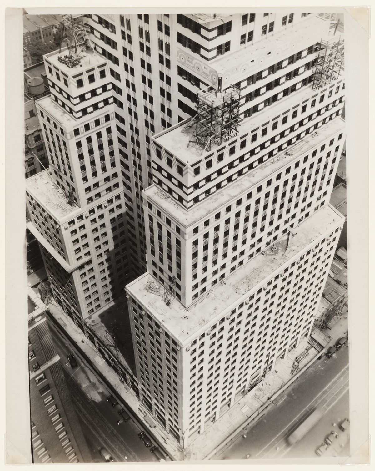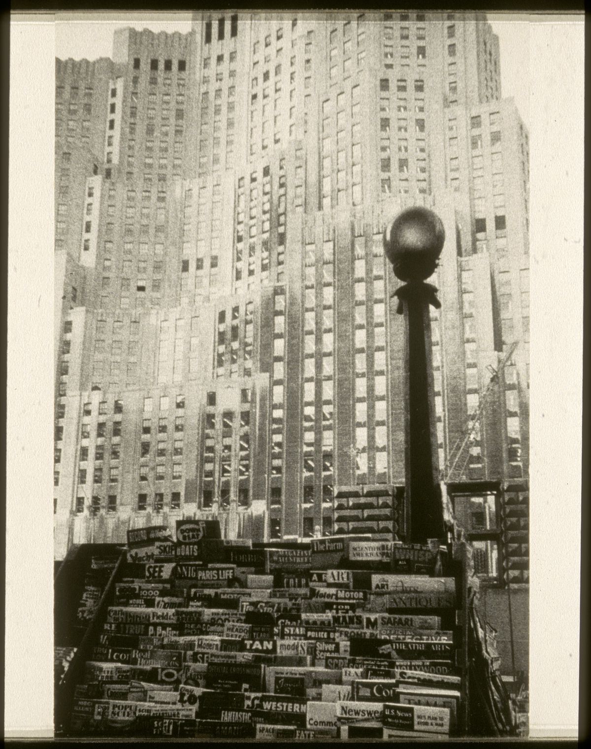 À preuve les images d’une 5e Avenue affairée, du Flatiron Building et du Rockefeller Center, ainsi que de l’édifice Chrysler en construction, photographié par Walker Evans avant que l’édifice ne devienne un symbole de la ville. À cette époque, Evans a pris la photo pour une publicité annonçant un constructeur d’autos dont l’avenir semble illimité. (Evans travaillera plus tard à contrat pour le compte d’un des occupants de l’édifice, lorsque le magazine _Fortune _ lui demande, ainsi qu’à James Agee, de documenter la situation critique des métayers en Alabama.) Viennent ensuite la célèbre silhouette nocturne de la ville, immortalisée dans une photo du début des années 1930 que Berenice Abbott a prise du sommet de l’Empire State Building fraîchement achevé; et l’image d’un DC-2 survolant la ville, réalisée par Margaret Bourke-White – la photo peut aujourd’hui sembler sinistre, avec cet avion argenté voltigeant au-dessus de Lower Manhattan.