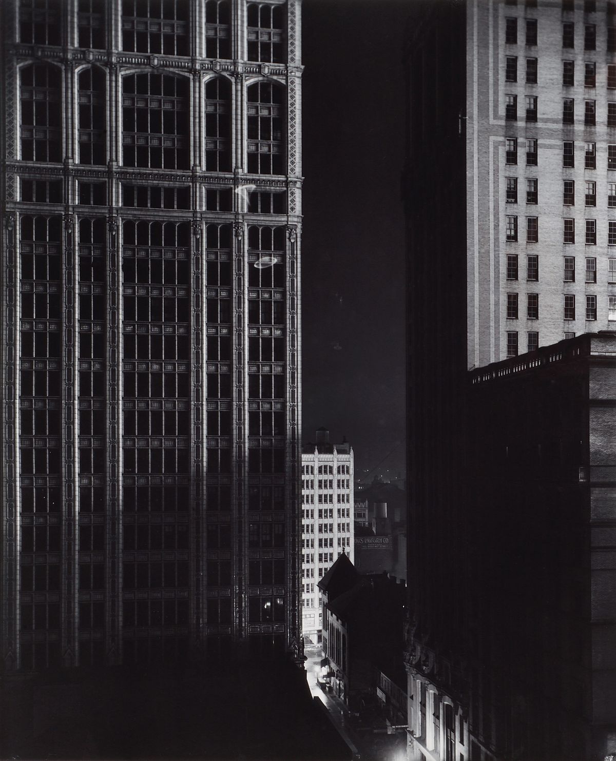 Ici, les archives du CCA donnent un aperçu de New York dans les images prises au XXe siècle par 25 photographes. Ce qui frappe – ce pourquoi ces photographies sont presque en séquence –, c’est la façon dont elles véhiculent l’atmosphère de la culture métropolitaine tout au long des décennies, témoignant de l’émergence, du règne et de la chute de cette capitale mondiale. Dans la deuxième image, qui date de 1910, Alfred Stieglitz montre, dans la pure tradition picturale, une scène de rue au cœur de Manhattan – image de grès ferrugineux, avec quelques voitures d’époque; mais en arrière-plan, nous apercevons la charpente d’un gratte-ciel, la charpente de l’avenir. Puis le futur se poursuit pendant quelques décennies.