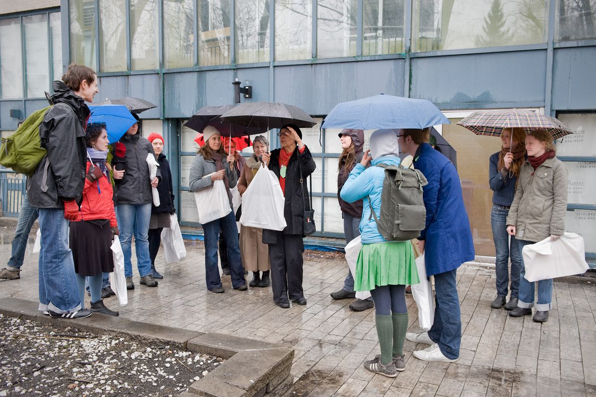 À travers une visite guidée du centre-ville de Montréal Amy Franceschini, artiste basée à San Francisco, fait découvrir aux participants les activités et les zones « rurales » du cœur de Montréal, remettant ainsi en question la dichotomie entre ville et campagne. Elle est la fondatrice de Futurefarmers, un atelier expérimental dont le collectif se penche sur les questions liées à l’écologie, et du magazine en ligne Atlas.