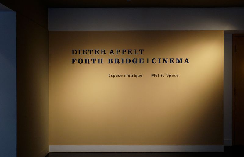 Dieter Appelt : Forth Bridge – cinéma. Espace métrique est la deuxième de quatre expositions composant la série Tangente, qui amène des artistes contemporains à établir un dialogue avec la collection du CCA et qui mène à la création de nouvelles œuvres de commande. Outre la production d’Appelt, l’exposition comprend une sélection d’images du pont sur le Forth puisées dans les archives du CCA, notamment les photographies d’Evelyn George Carey (1858–1932). Les archives du pont sur le Forth, que le CCA a acquises à la fin des années 1970, comprennent quelque 500 pièces, parmi lesquelles on trouve des tirages photographiques, des albums, des dessins, des dossiers de chantiers et des documents éphémères.