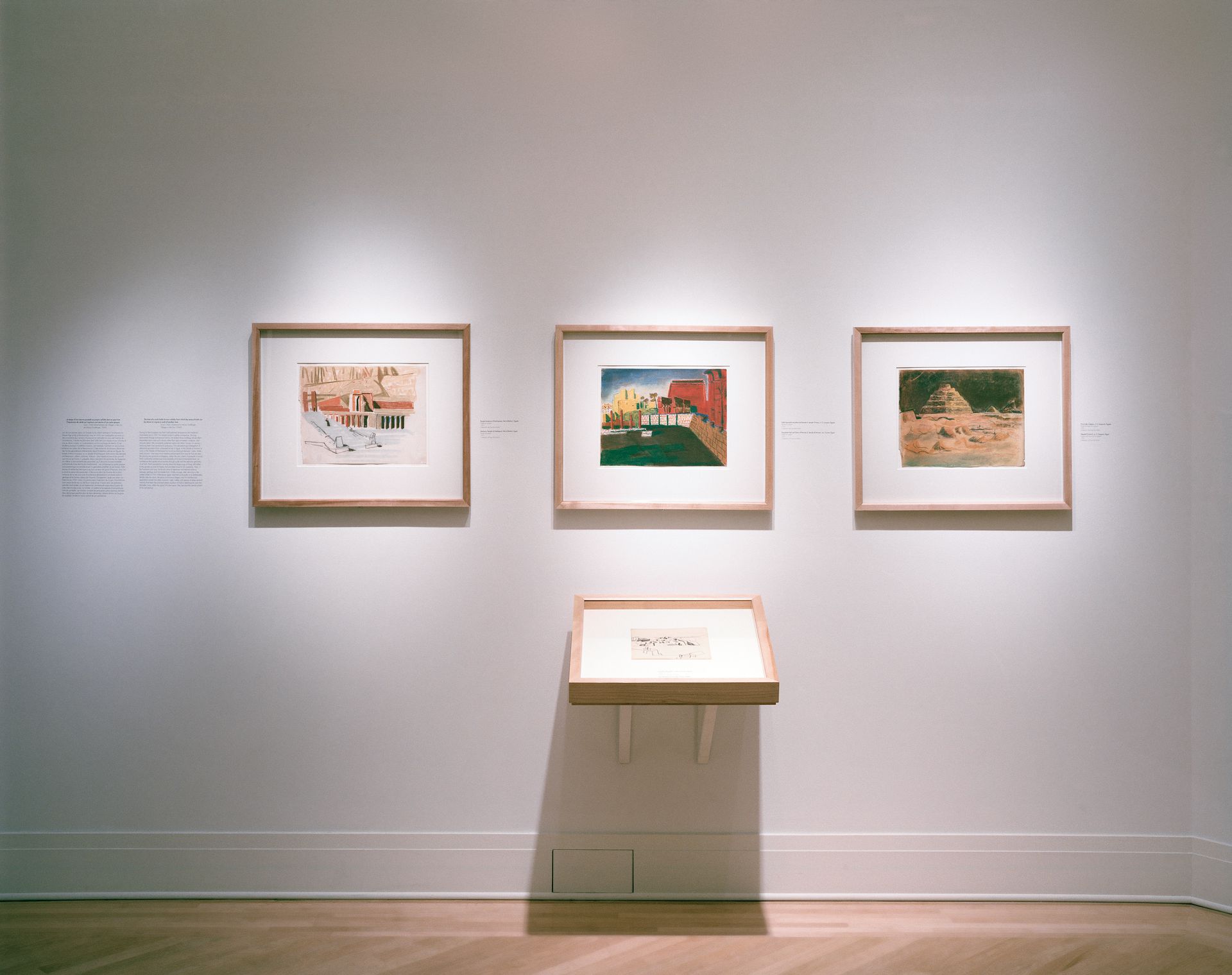 En observant les dessins de Louis Kahn, on note que sa recherche de la monumentalité abstraite, plus intense dans ses réalisations des années 60, était déjà présente des décennies auparavant dans ses nombreux dessins, croquis de voyage et paysages.