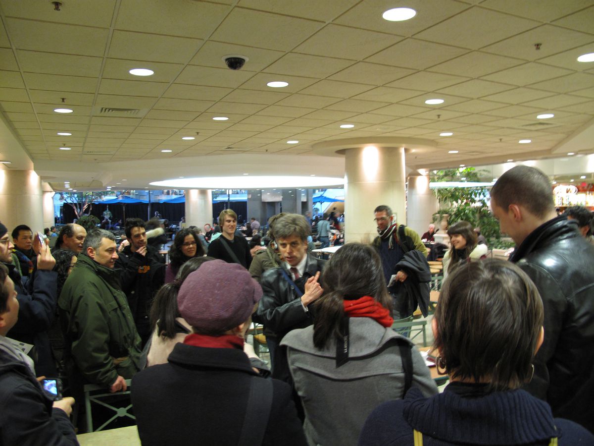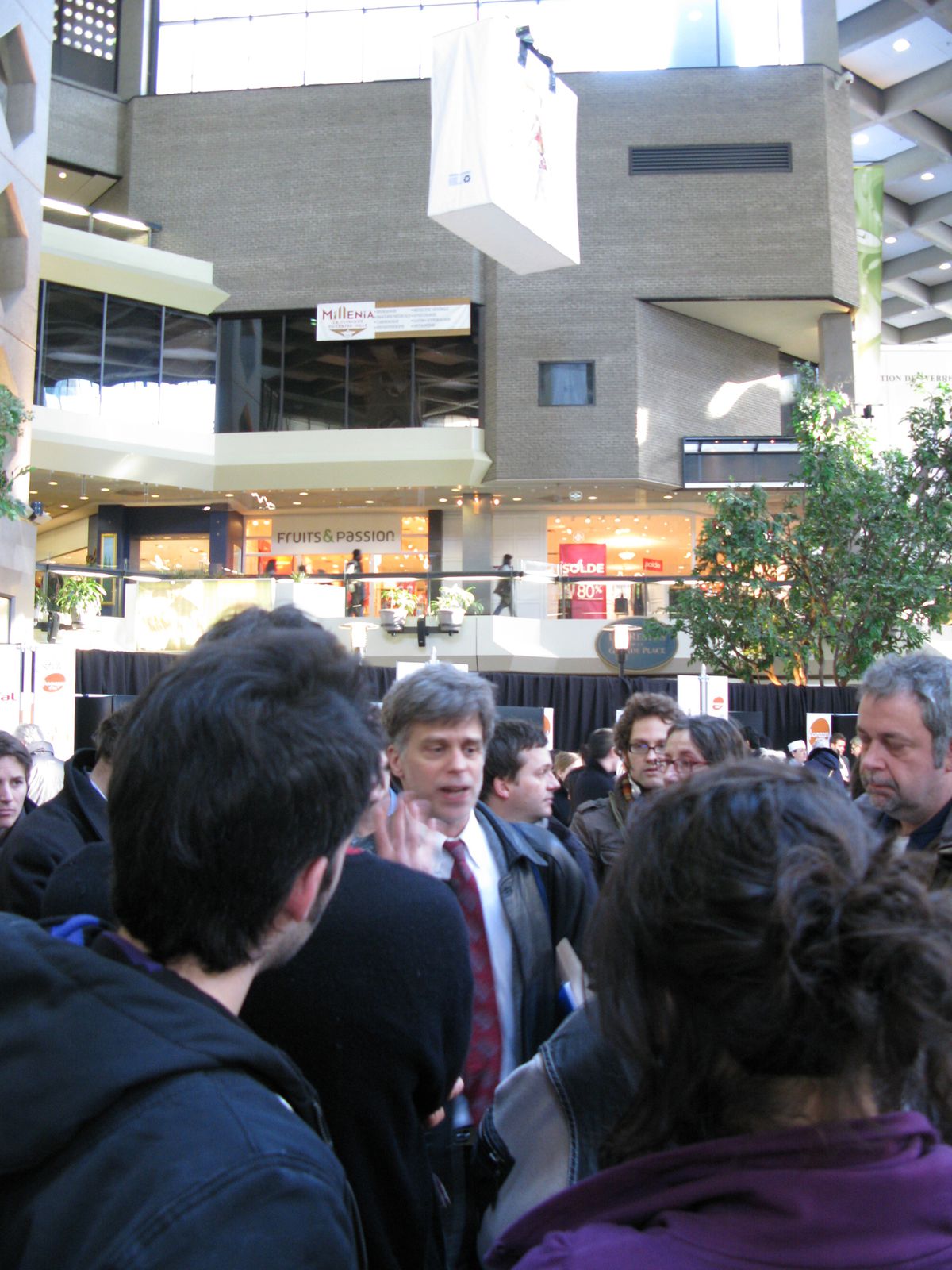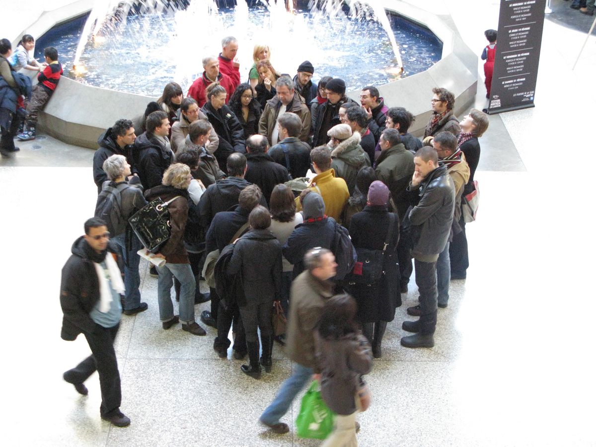Bill Brown guide les participants à travers le Montréal souterrain, indiquant les lieux où se trouvent des caméras de surveillance et discutant de la place qu’occupe la surveillance dans l’espace public. Brown est membre des Surveillance Camera Players, un groupe new yorkais qui repère et répertorie les caméras de surveillance installées en milieu urbain.