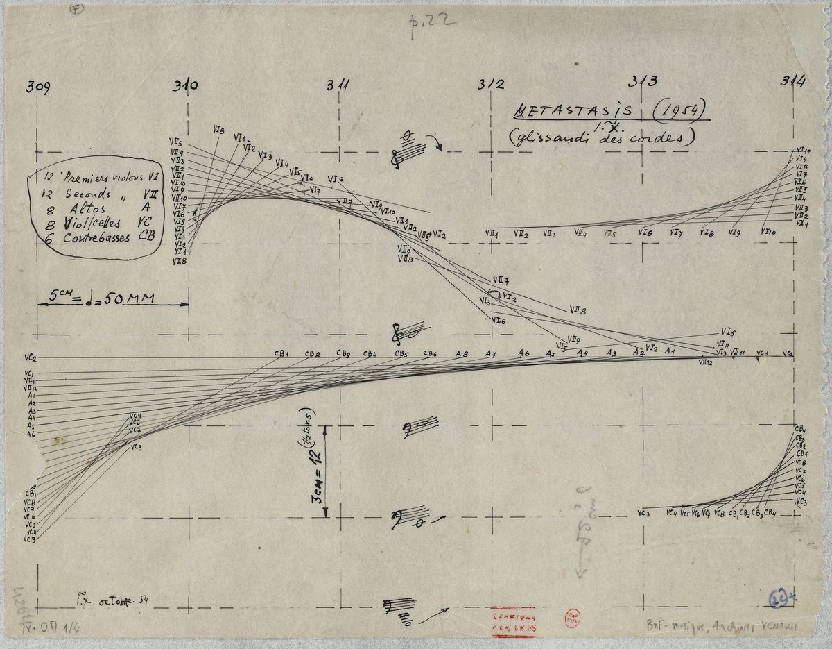 L’exposition Iannis Xenakis : compositeur, architecte, visionnaire explore le rôle fondamental que joue le dessin dans l’œuvre de Iannis Xenakis. Compositeur avant-gardiste parmi les plus marquants de la scène musicale de la fin du XXe siècle, il est également connu pour son travail novateur dans la conception de La Tourette et du Pavillon Philips de Le Corbusier.