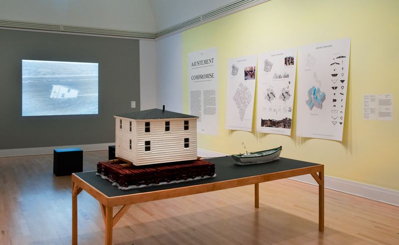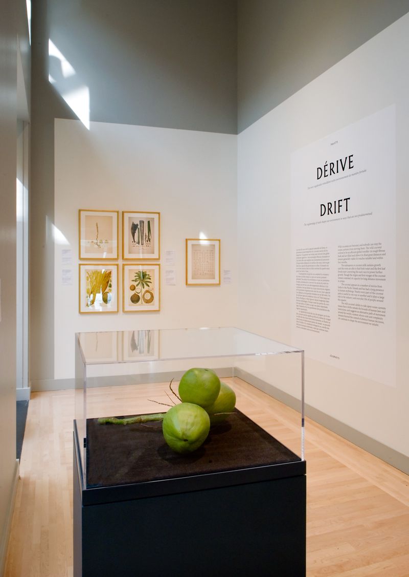 L’exposition Trajets adopte une perspective autre, celle de l’impact des mouvements sur l’environnement. Les exemples vont de la noix de coco qui dérive librement selon le courant océanique et regerme partout où elle touche terre au transfert, au déracinement et au réaménagement forcés de collectivités par les gouvernements d’une façon qui modifie à jamais le paysage et la société.