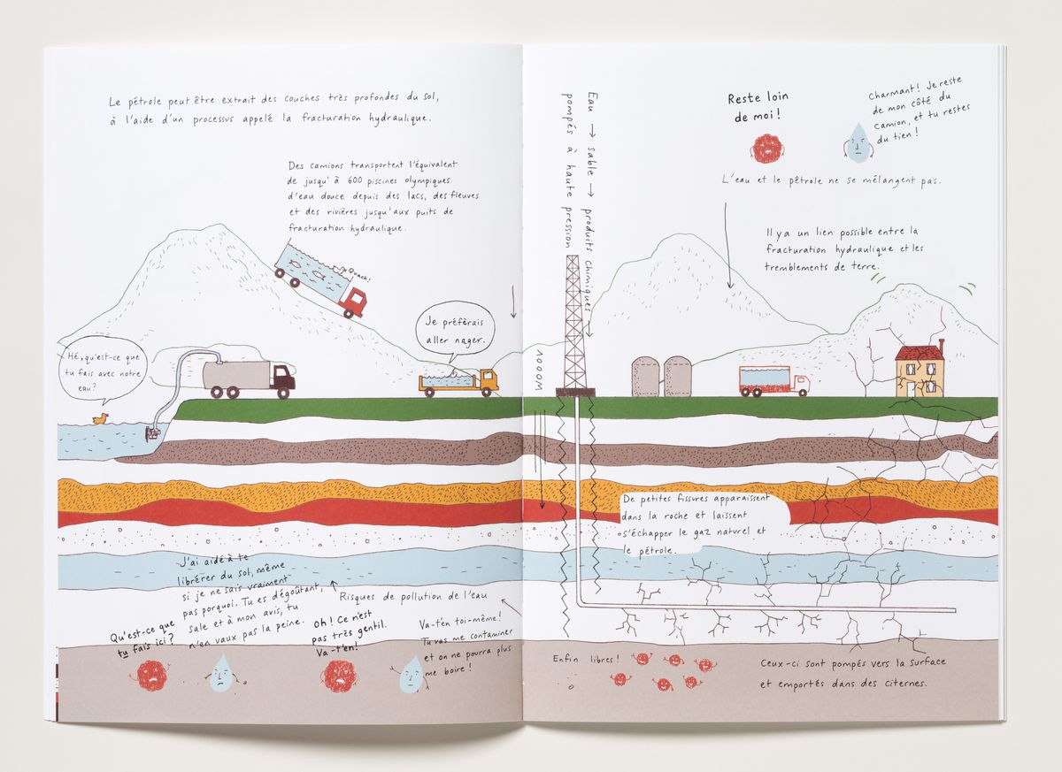 L’album illustré Adieu, pétrole explore comment le pétrole est produit et comment nous pouvons diminuer notre dépendance à celui-ci. Le récit de Harriet Russell offre des solutions possibles pour alimenter nos véhicules, chauffer nos maisons et fabriquer les biens que nous consommons. Le livre adopte une perspective non conventionnelle sur l’énergie et sur les problèmes qui surviendront lorsque nous aurons épuisé nos réserves de pétrole, invitant les lecteurs de tous âges à imaginer leur vie quotidienne de façon différente.